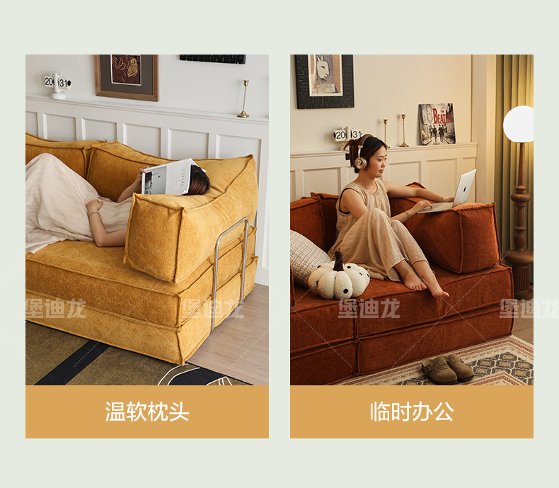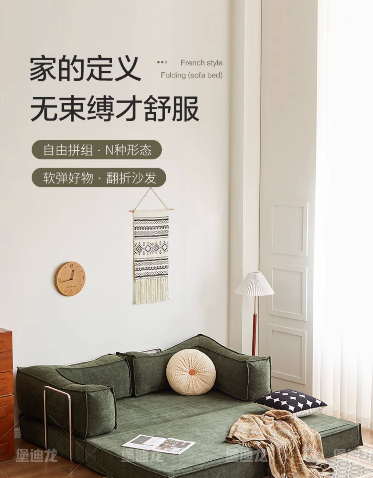 레트로 패브릭 소파 베드 작은 아파트 거실 침실 홈 접이식 및 세탁 가능한 2인용 또는 3인용 모듈 소파
