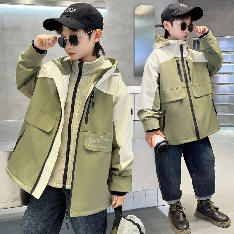 소년 봄 재킷 2025 새로운 어린이 봄, 가을 후드 재킷 유행 어린이 다목적 잘 생긴 야외 스타일스토어 가기