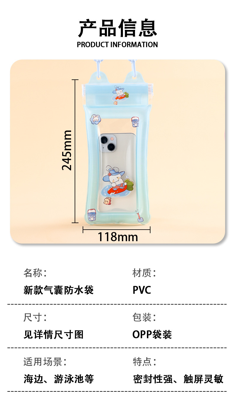 70% off 스택 방수 가방 빛나는 야외 만화 에어백 방수 케이스 다이빙 수영 터치 스크린 표류 휴대 전화 케이스