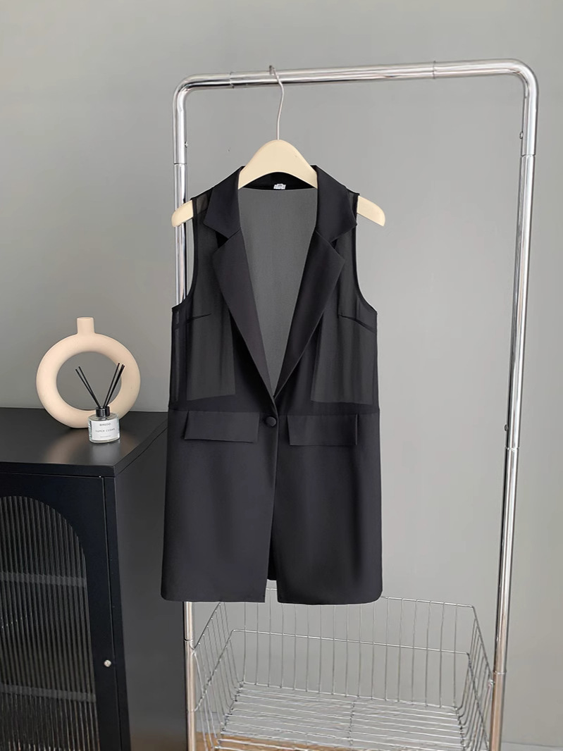 여성을위한 쉬폰 정장 조끼 여름 새로운 슬림 피트 전문 얇은 조끼 외부 허리 조끼 탑스토어 가기