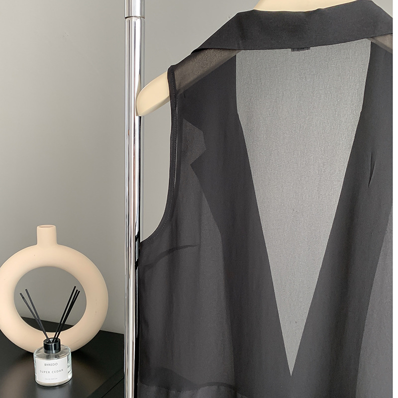 여성을위한 쉬폰 정장 조끼 여름 새로운 슬림 피트 전문 얇은 조끼 외부 허리 조끼 탑