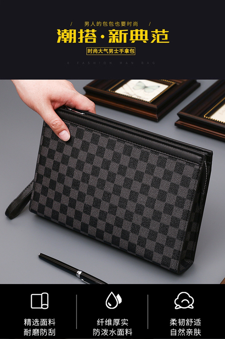 핸드백 남성 패션 트렌디 브랜드 남성 클러치 백 대용량 캐주얼 비즈니스 클러치 백 격자 무늬 럭셔리 클러치 백 남성용