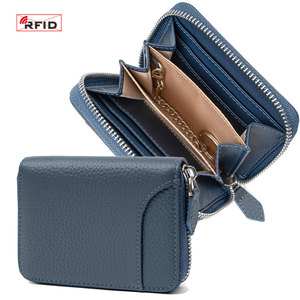 钱包女 短款折叠小巧卡包牛皮拉链迷你零钱包