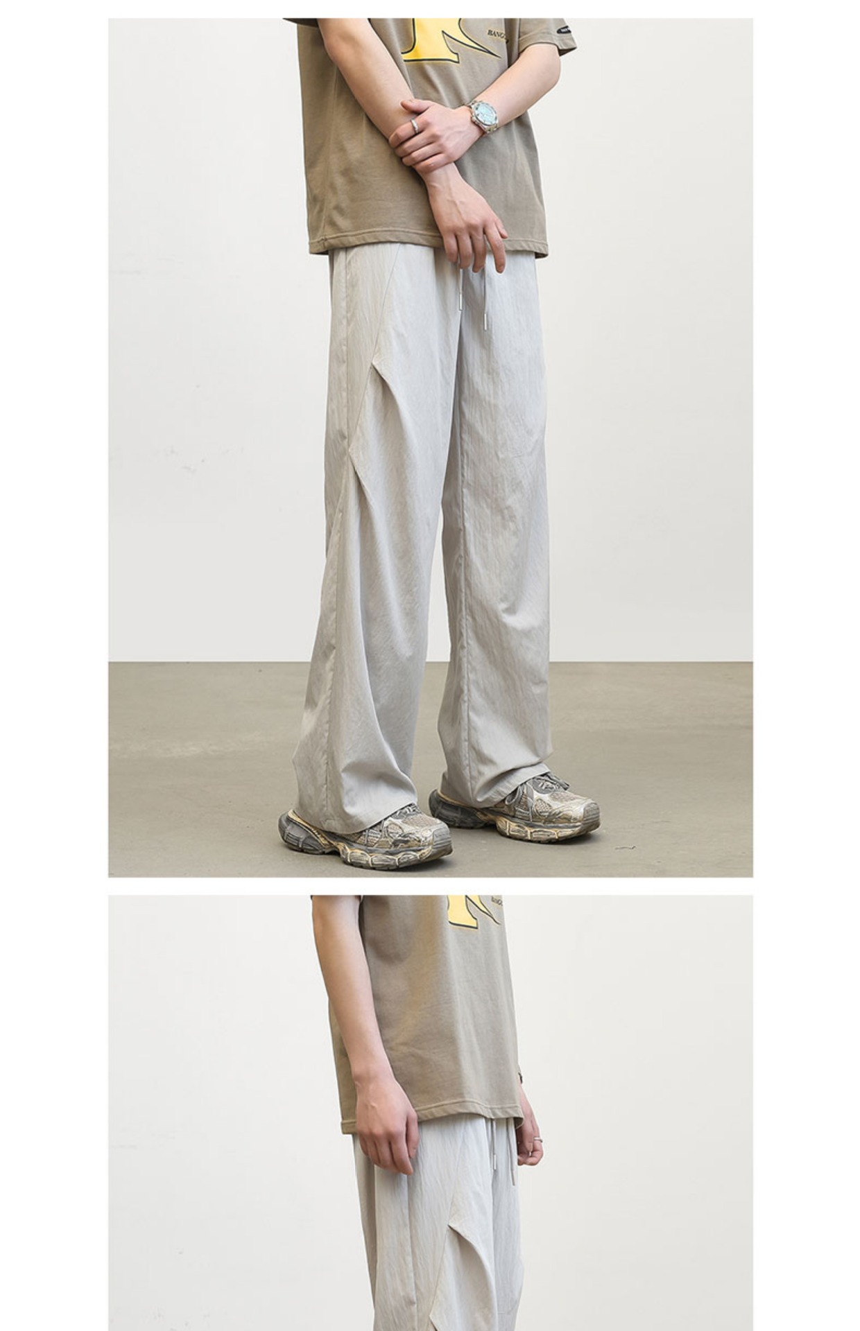 아메리칸 바이브 속건 캐주얼 팬츠 남성 여름 하이 스트리트 패션 브랜드 플리츠 파라트리스 팬츠 아웃도어 마운틴 와이드 레그 어썰트 팬츠