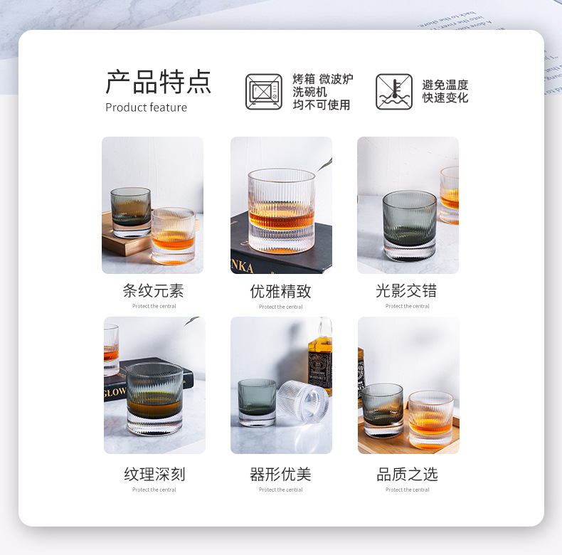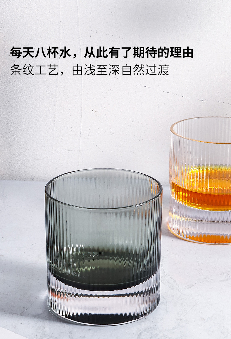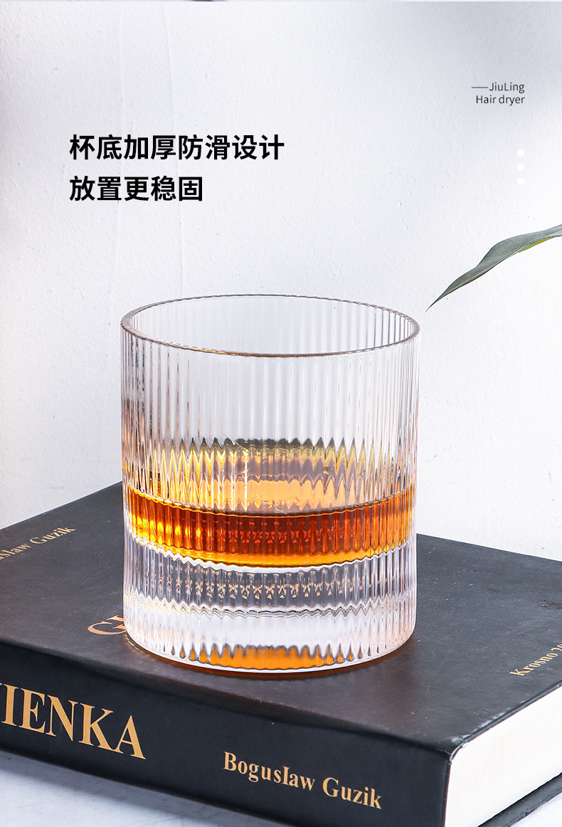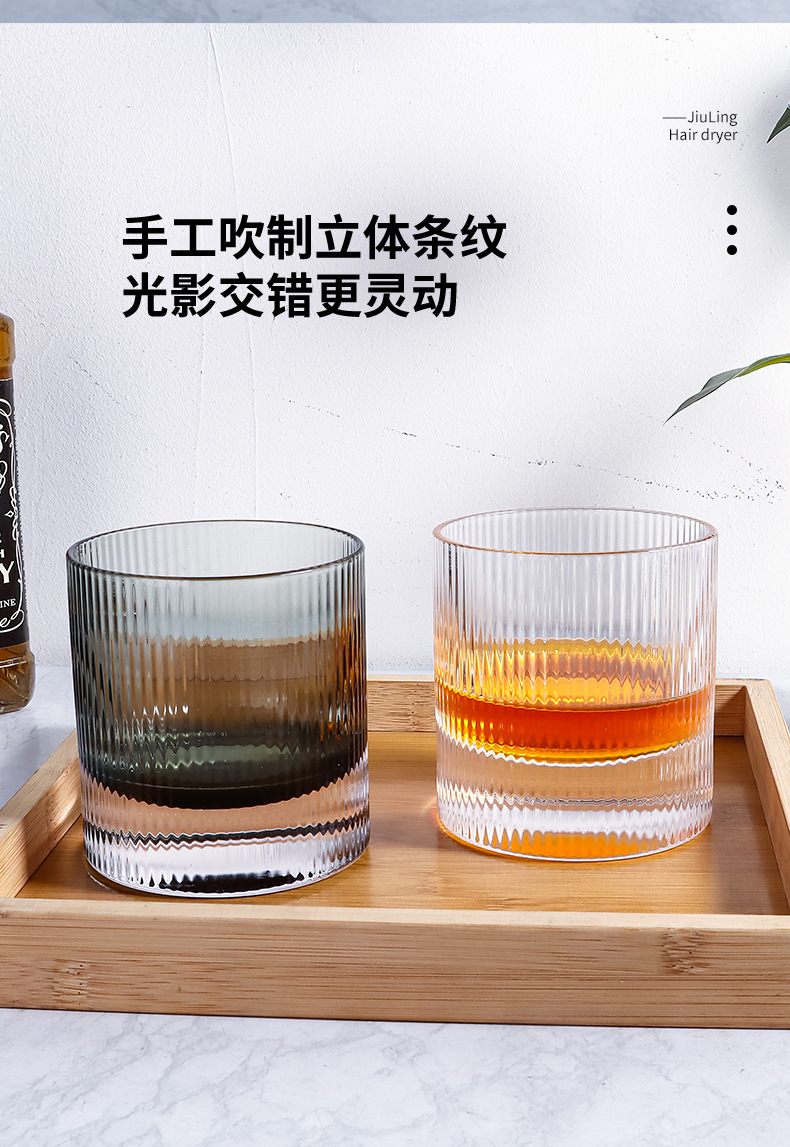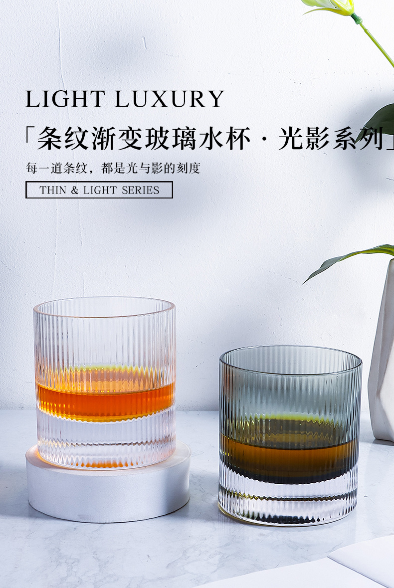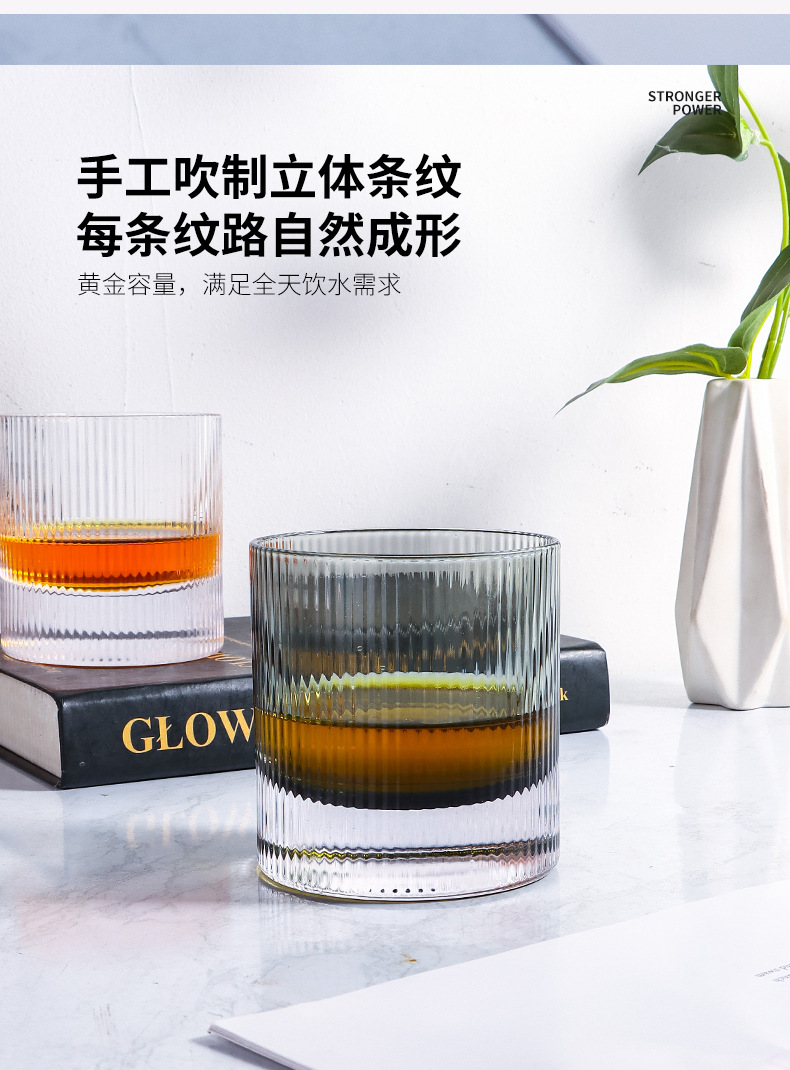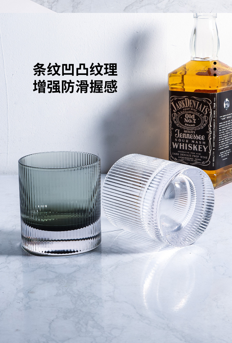 라이트 럭셔리 두꺼운 바닥 위스키 잔 북유럽 스타일 가정용 구강 세정 컵 크리스탈 유리 세로 줄무늬 주류 잔 외국 와인 잔스토어 가기