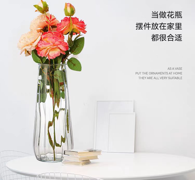 고급 대형 꽃병, 가벼운 고급 투명 유리 꽃병, 꽃꽂이, 수생 장미, 거실 장식 장식품, 국경 간 도매스토어 가기
