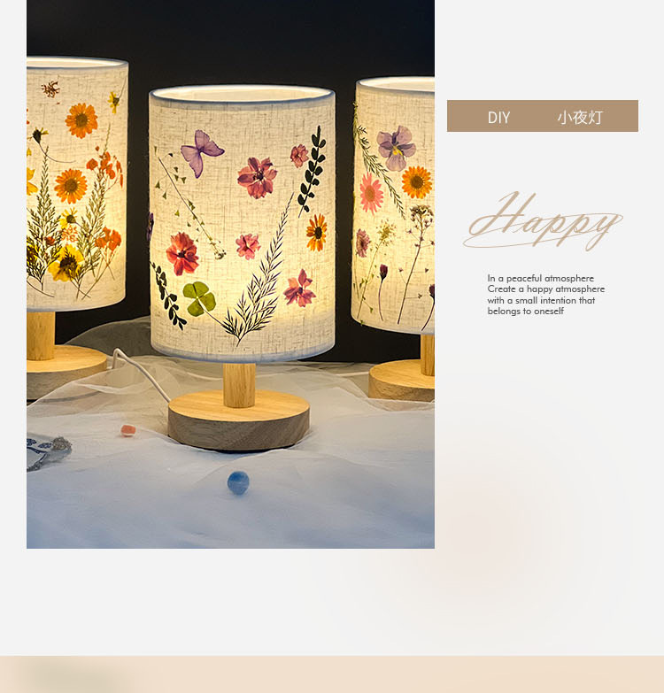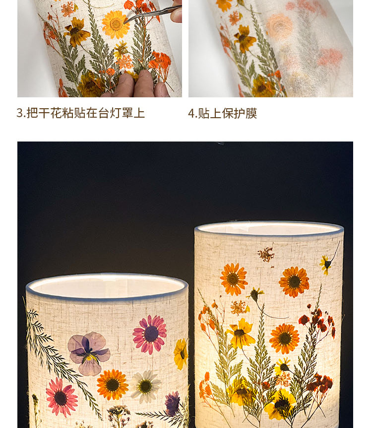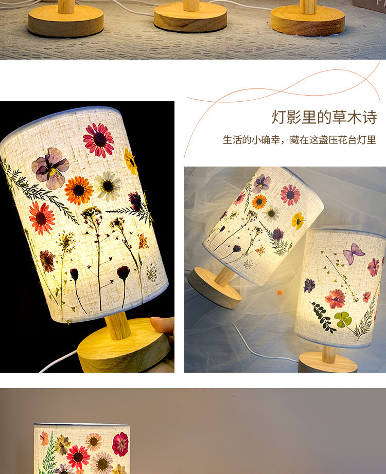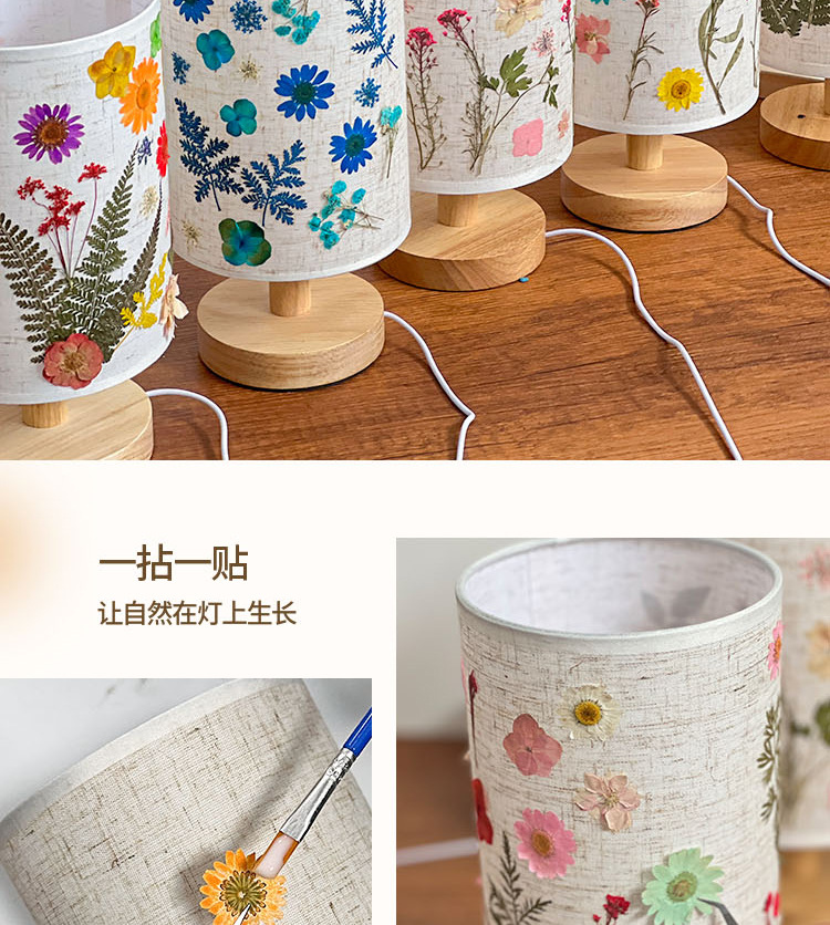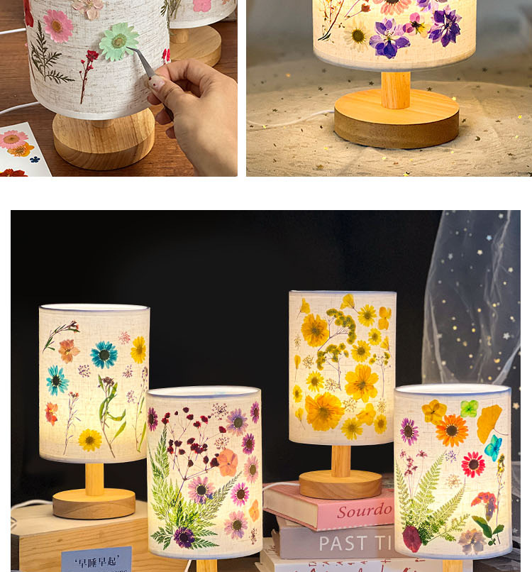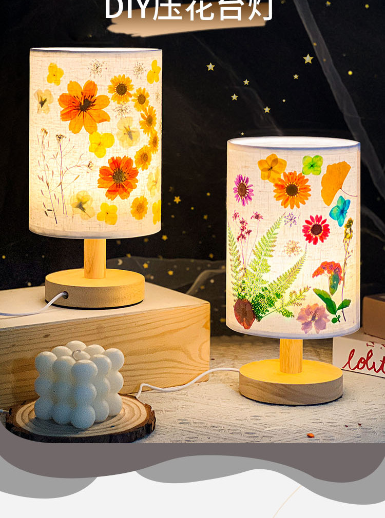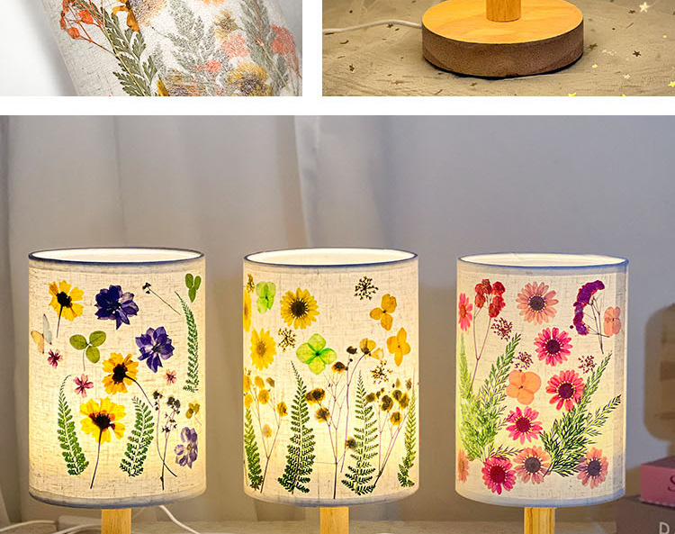 졸업 시즌 선물 양각 테이블 램프 크리 에이 티브 diy 수제 재료 말린 꽃 식물 붙여 넣기 패브릭 분위기 야간 조명