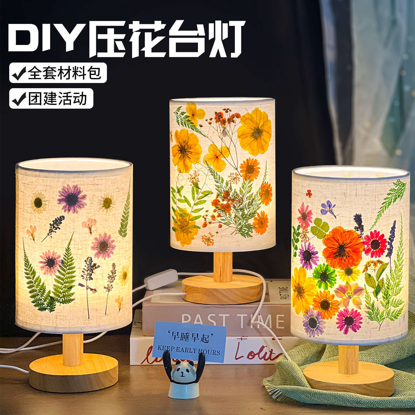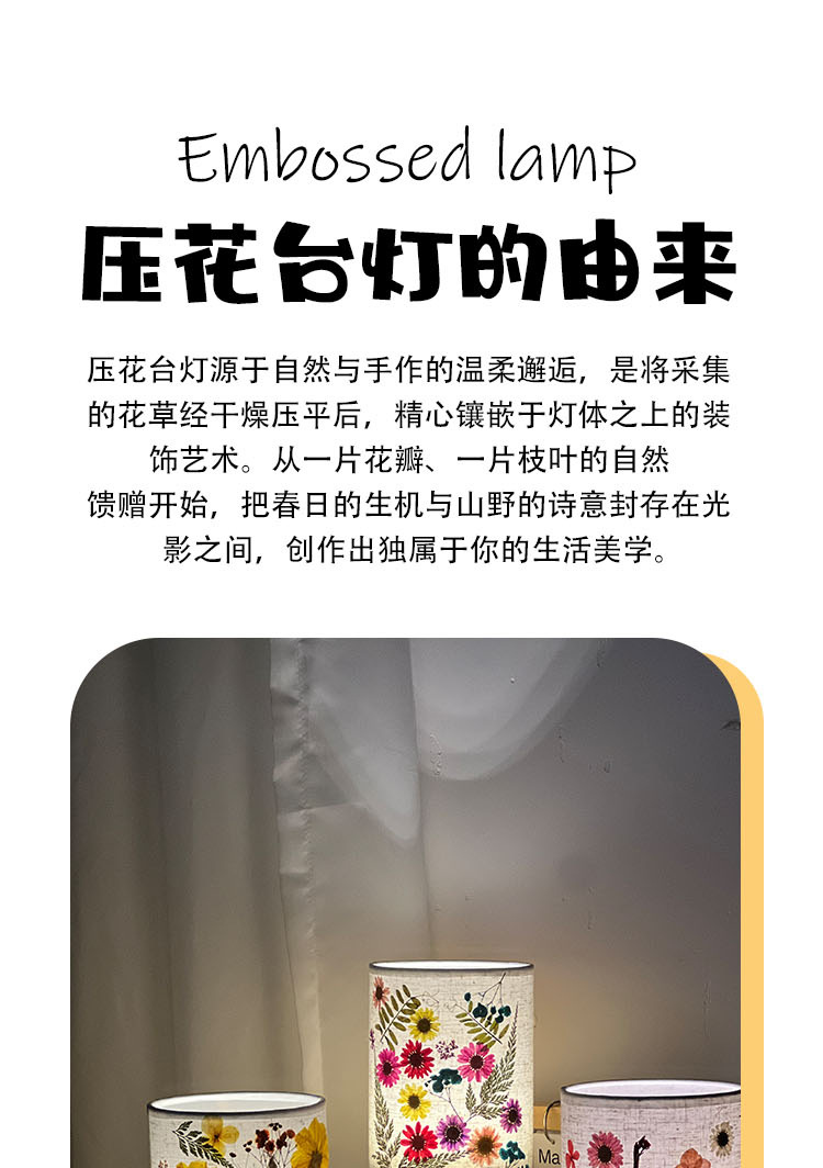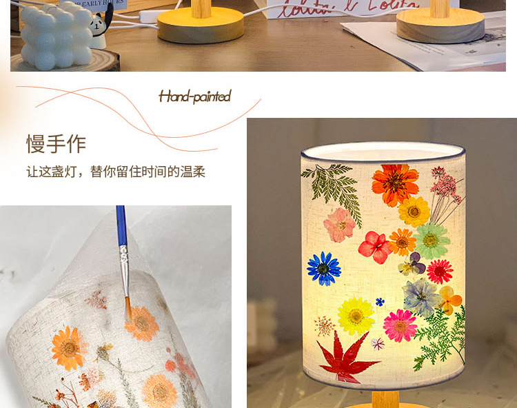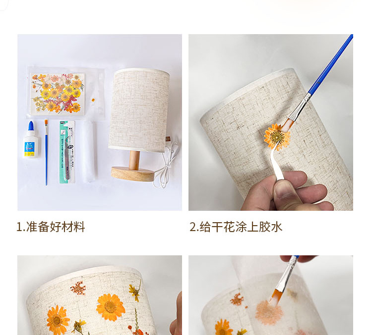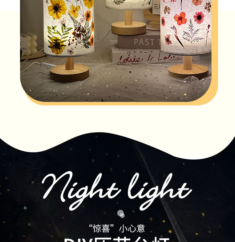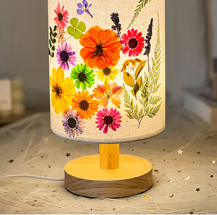 졸업 시즌 선물 양각 테이블 램프 크리 에이 티브 diy 수제 재료 말린 꽃 식물 붙여 넣기 패브릭 분위기 야간 조명