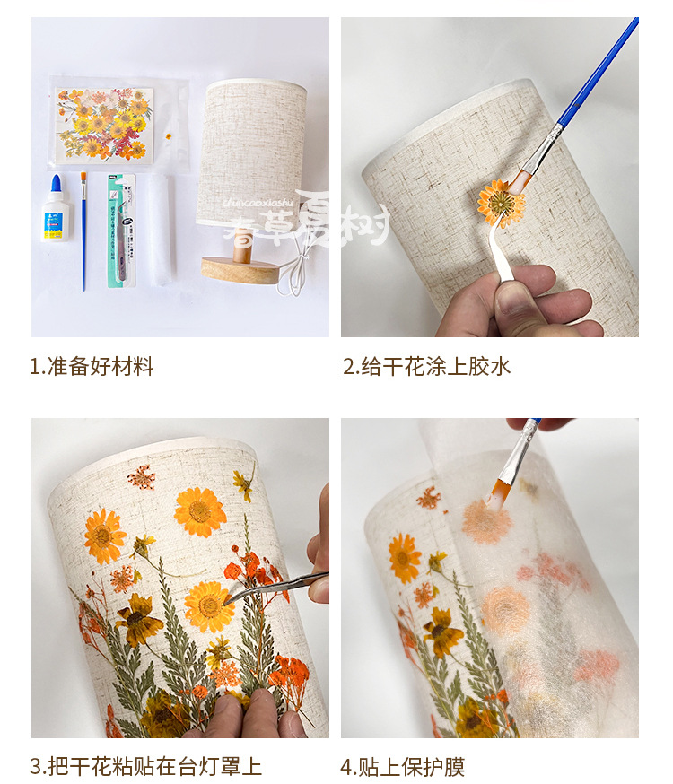 졸업 시즌 선물 양각 테이블 램프 크리 에이 티브 diy 수제 재료 말린 꽃 식물 붙여 넣기 패브릭 분위기 야간 조명스토어 가기
