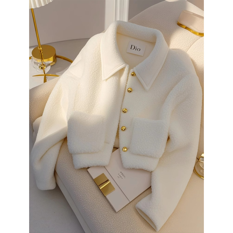 여성을위한 Xiaoxiangfeng 흰색 양털 코트 2025 새로운 가을, 겨울 올인원 두꺼운 따뜻한 고급 재킷 탑