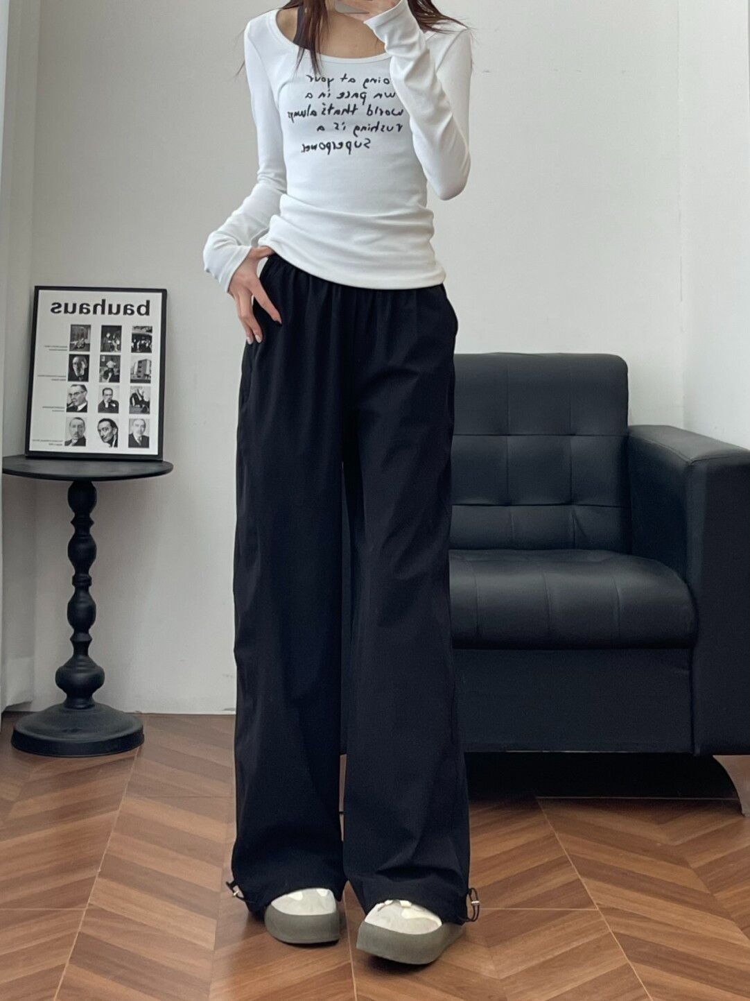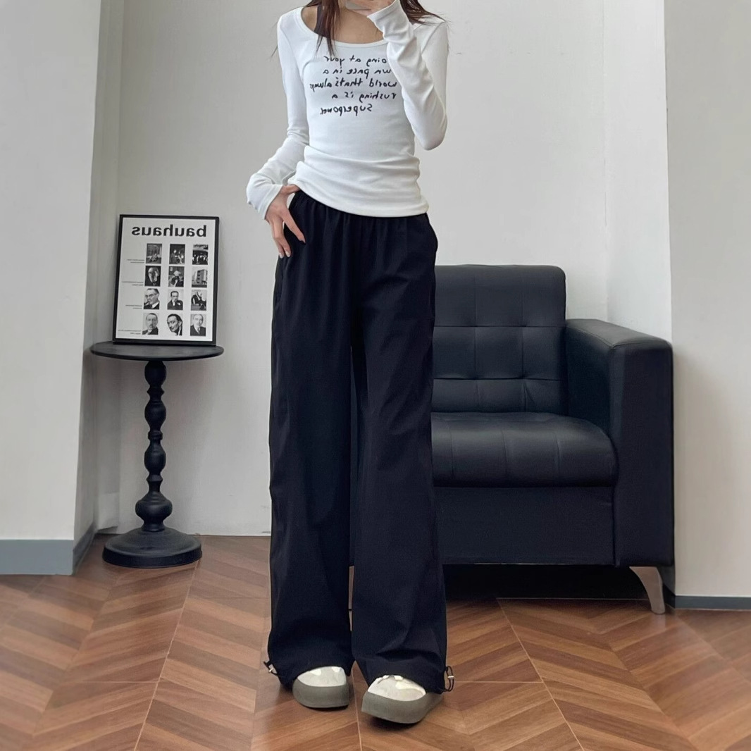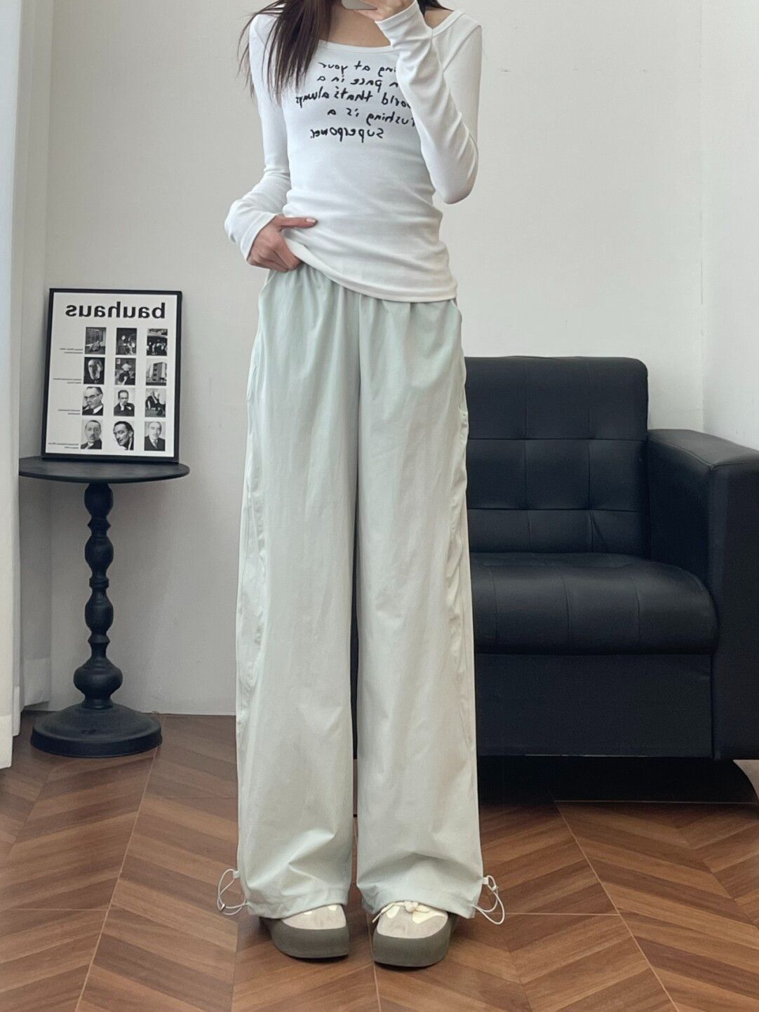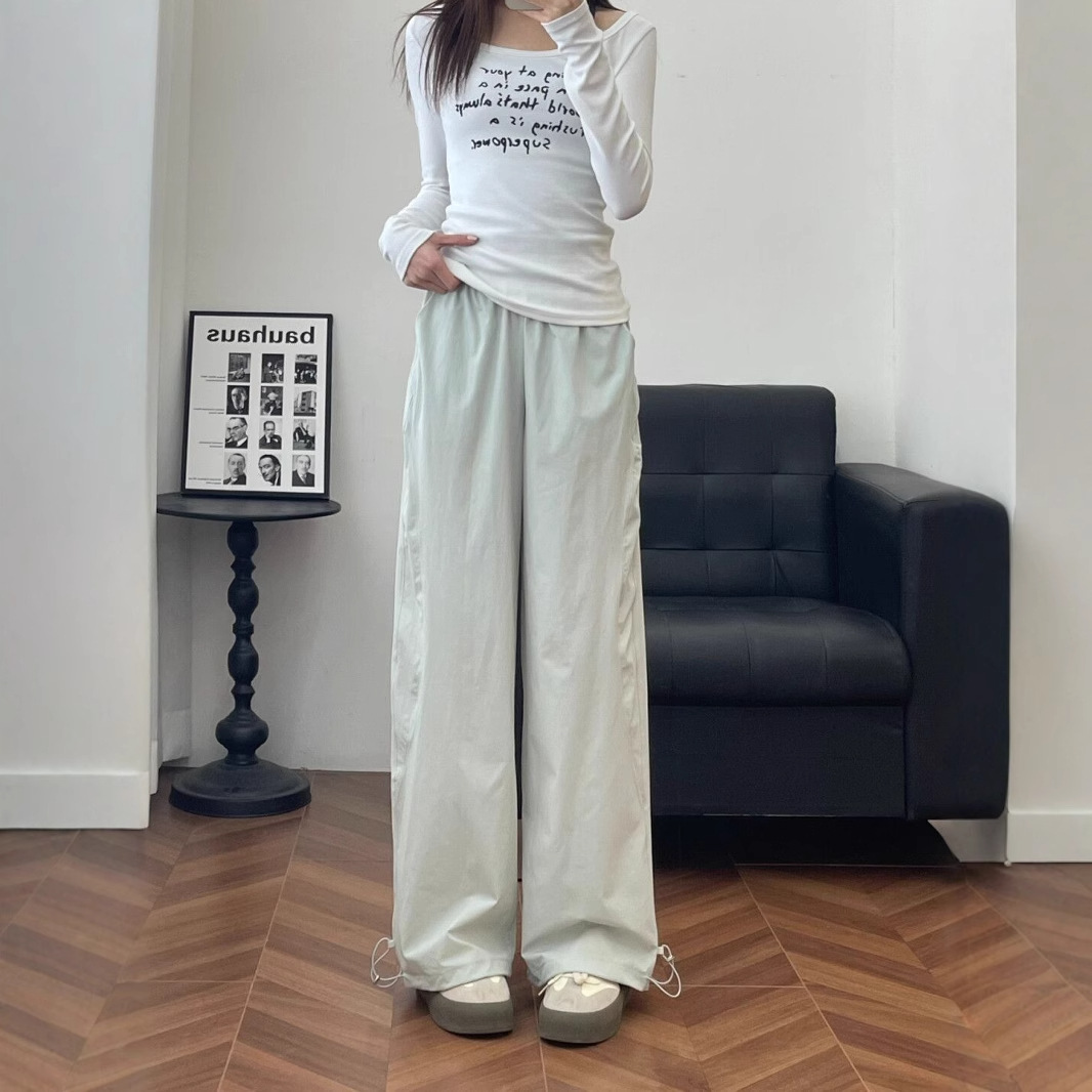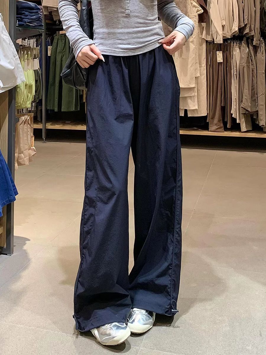 여성용 스포츠 캐주얼 팬츠, 얇고 편안한 하이웨이스트 아메리칸 스타일 사선 워크웨어 세이버 팬츠, 등산용 와이드 레그 속건 팬츠