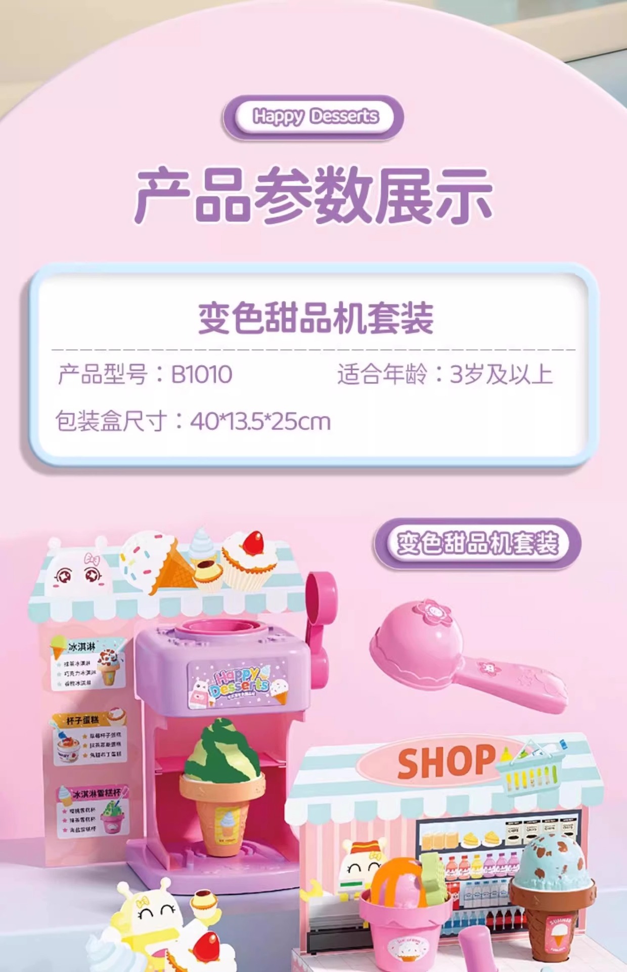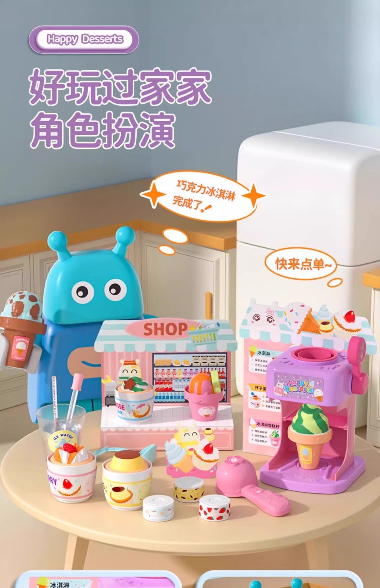 Happy Guest Director의 동일한 색상 변경 디저트 기계 아이스크림 도넛 어린이 놀이 집 장난감 소녀 3+스토어 가기