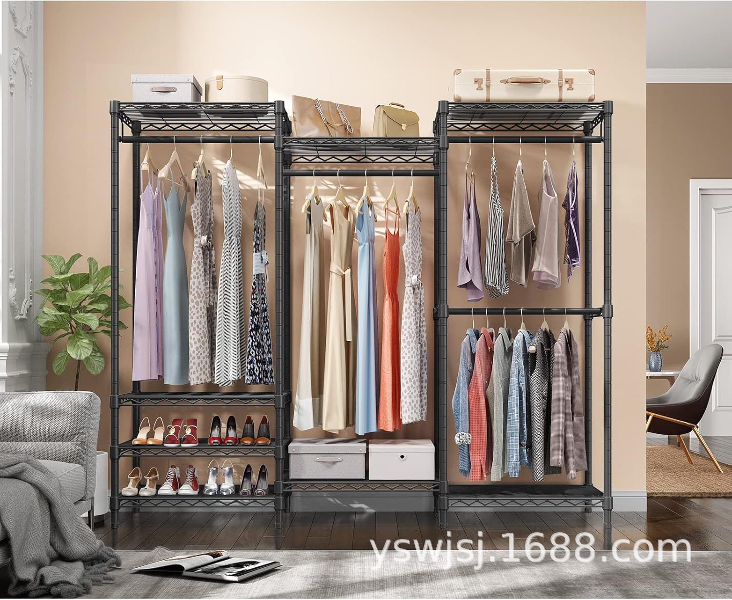 국경 간 두꺼운 강화 강철 파이프 휴대용 옷장 조정 가능한 헤비 듀티 옷걸이 수직 홈 침실 간단한 옷장스토어 가기