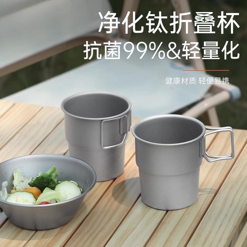 정화 티타늄 머그컵 휴대용 야외 여행 차 메이커 컵 접이식 손잡이 끓는 물 컵 캠핑 세트