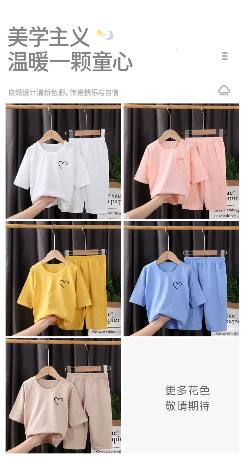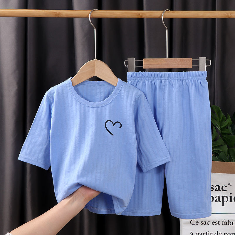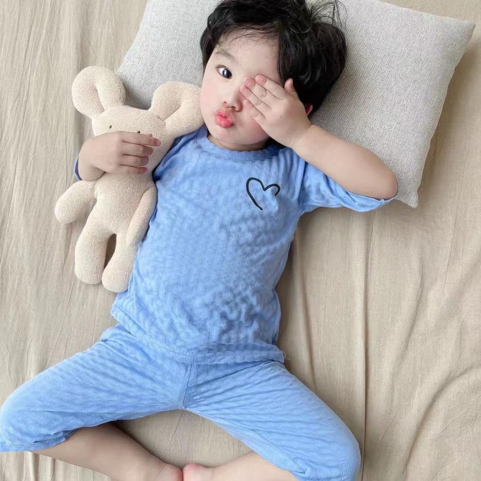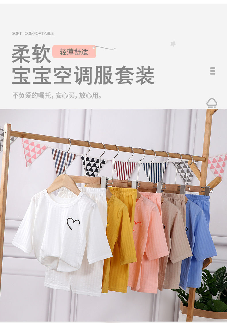 아기 잠옷, 여름 가정복 세트, 여름 얇은 어린이 에어컨 옷, 소년 소녀, 아기 옷, 트렌디한 배송스토어 가기