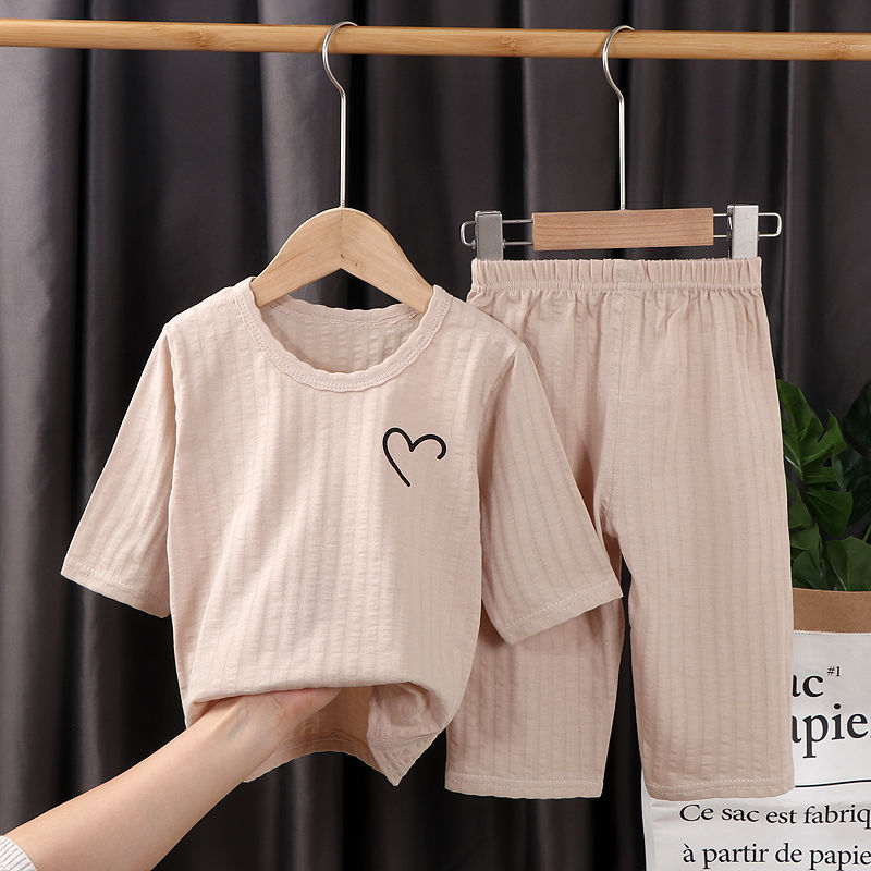 아기 잠옷, 여름 가정복 세트, 여름 얇은 어린이 에어컨 옷, 소년 소녀, 아기 옷, 트렌디한 배송