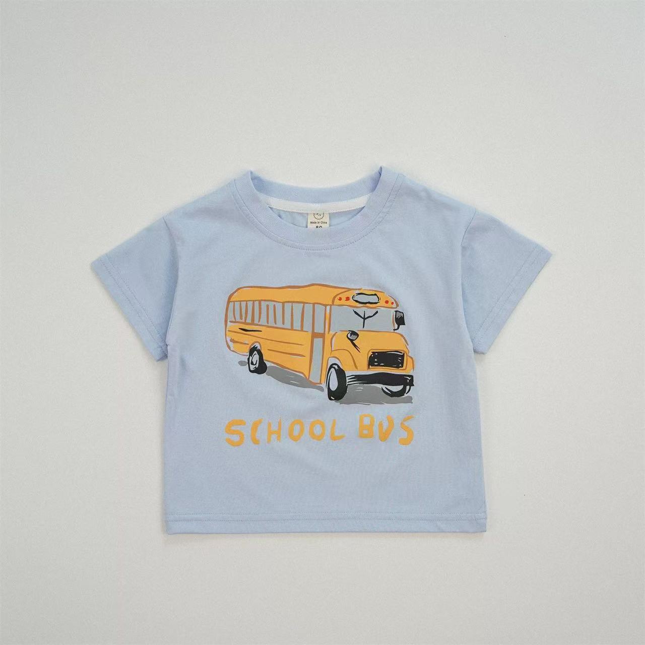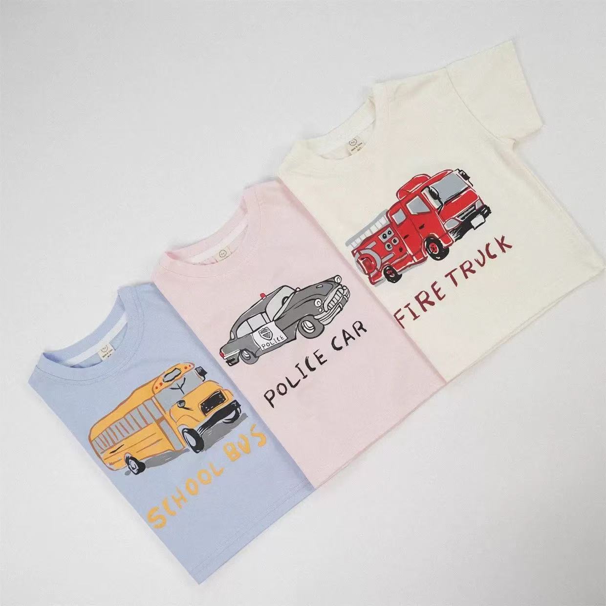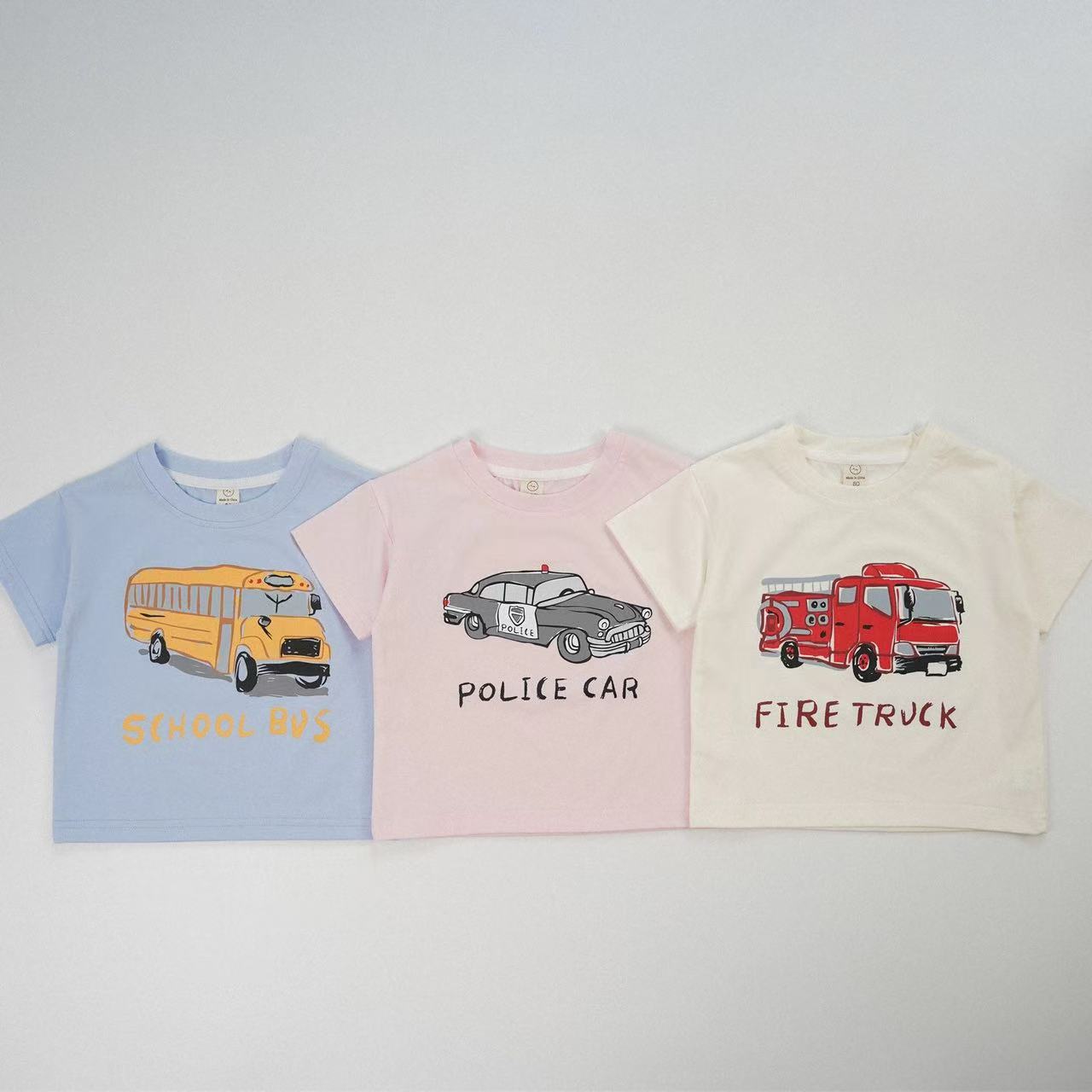 2025 여름 신차 티셔츠 자동차 만화 프린트 패션 라운드 넥 반팔 어린이 귀여운상의스토어 가기