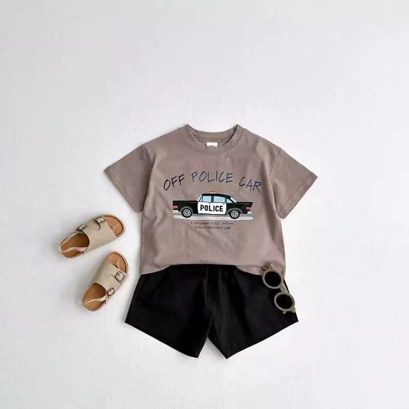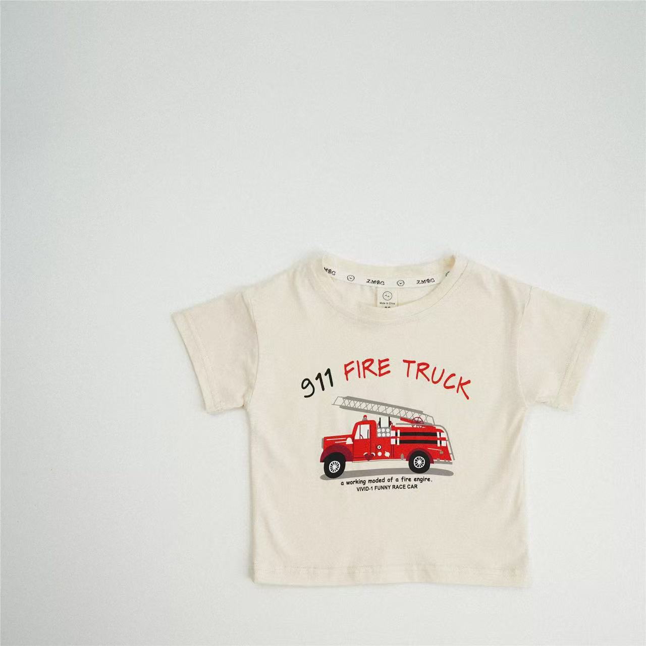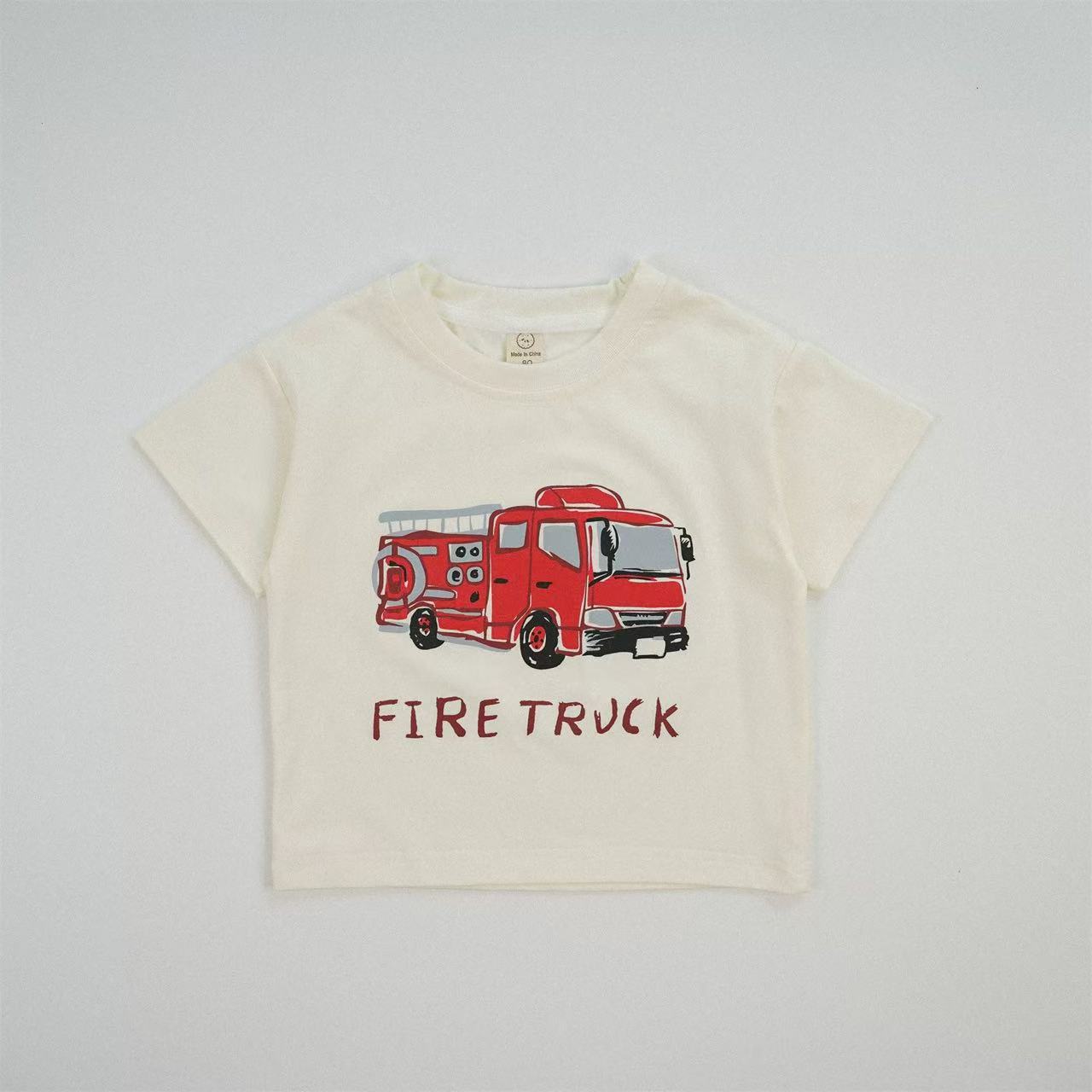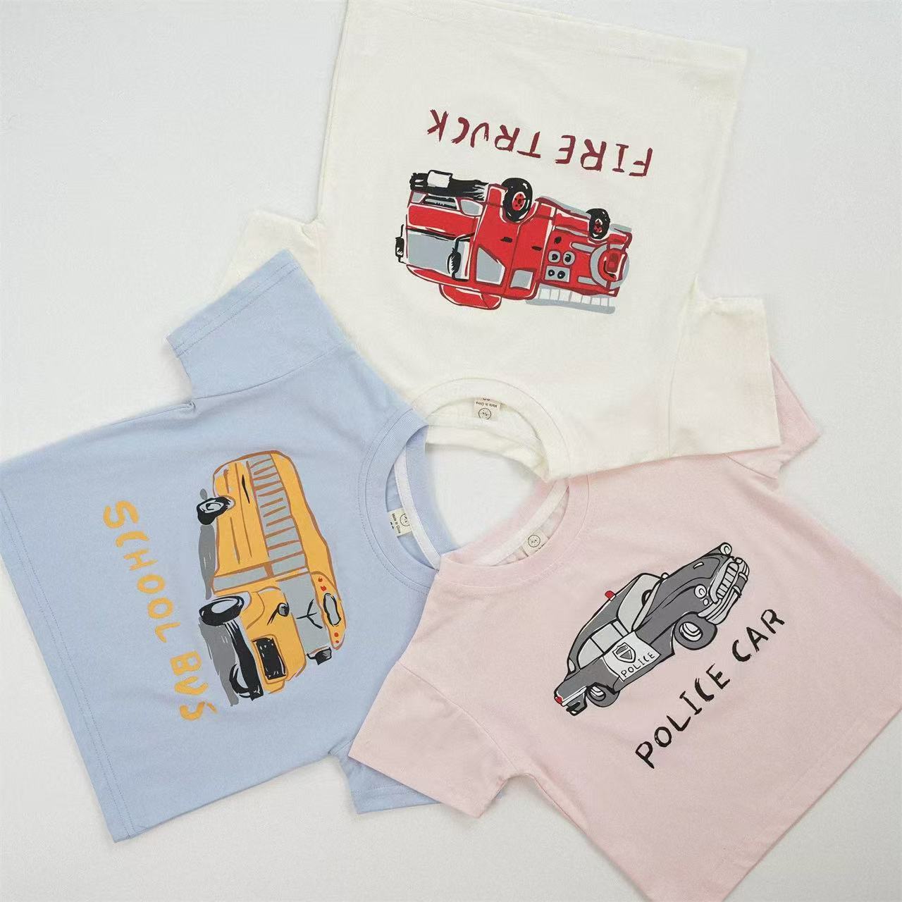 2025 여름 신차 티셔츠 자동차 만화 프린트 패션 라운드 넥 반팔 어린이 귀여운상의