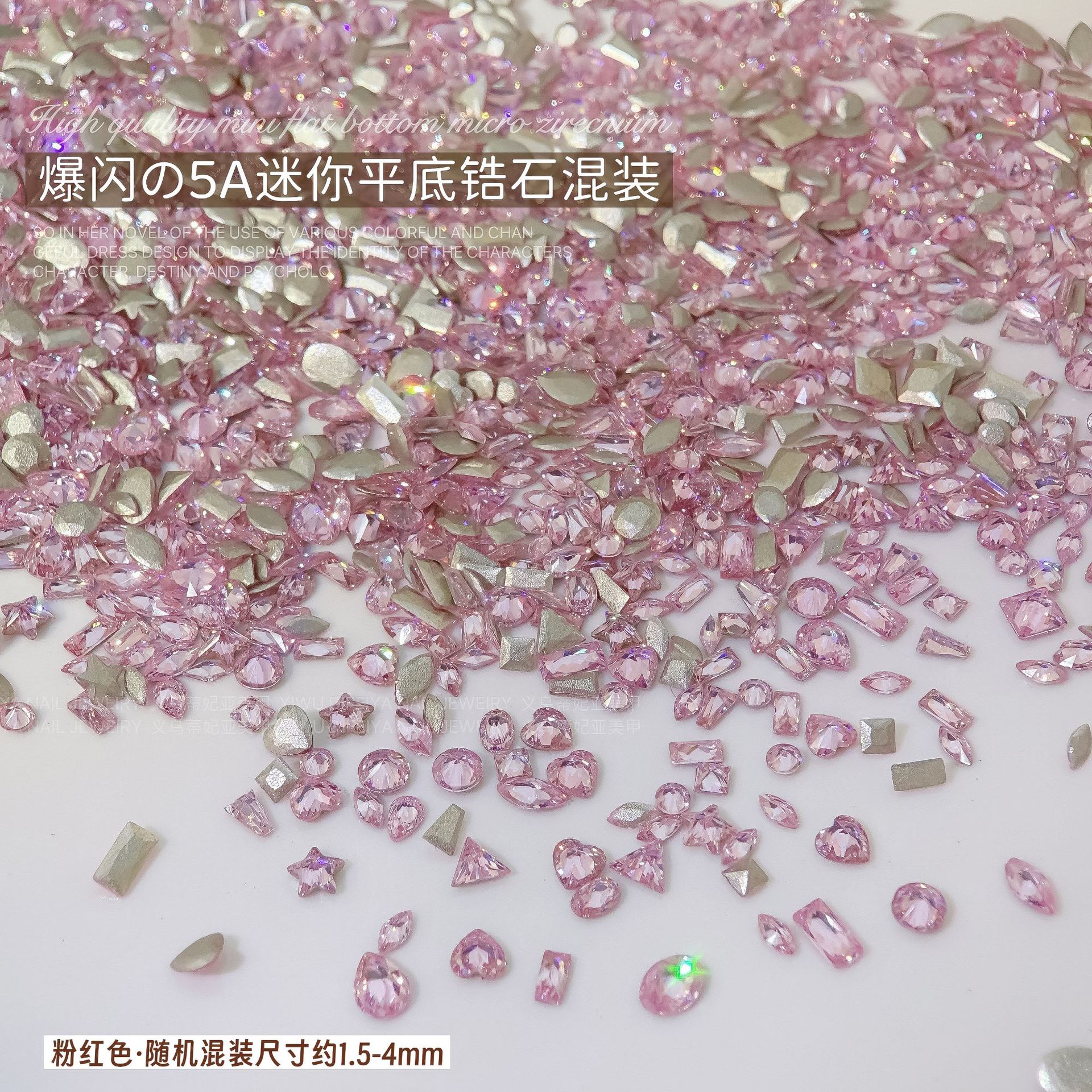 • 핑크 미니 플랫 바닥 지르콘 혼합 싱글