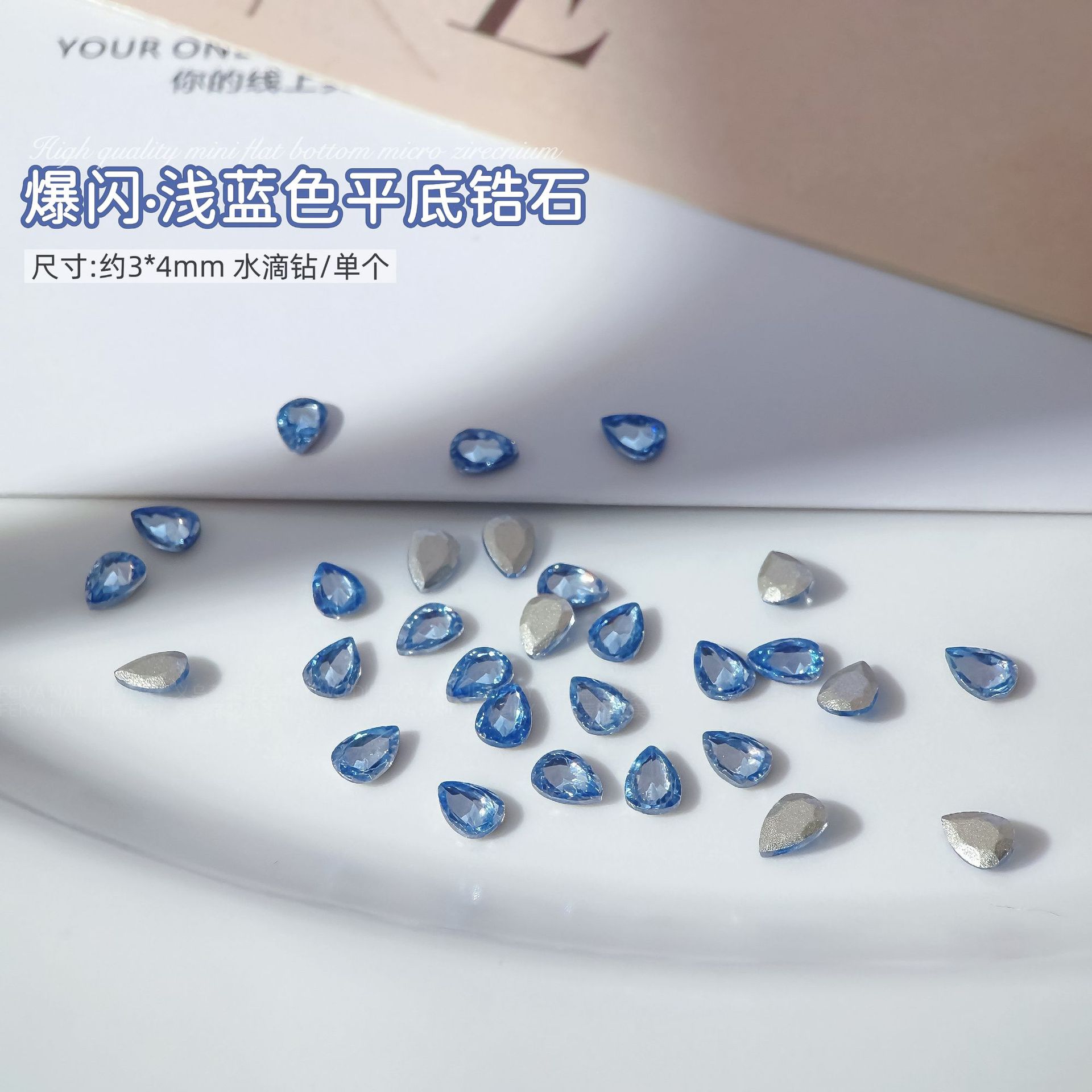 • 라이트 블루 플랫 바닥 지르콘 3*4mm 물방울 싱글