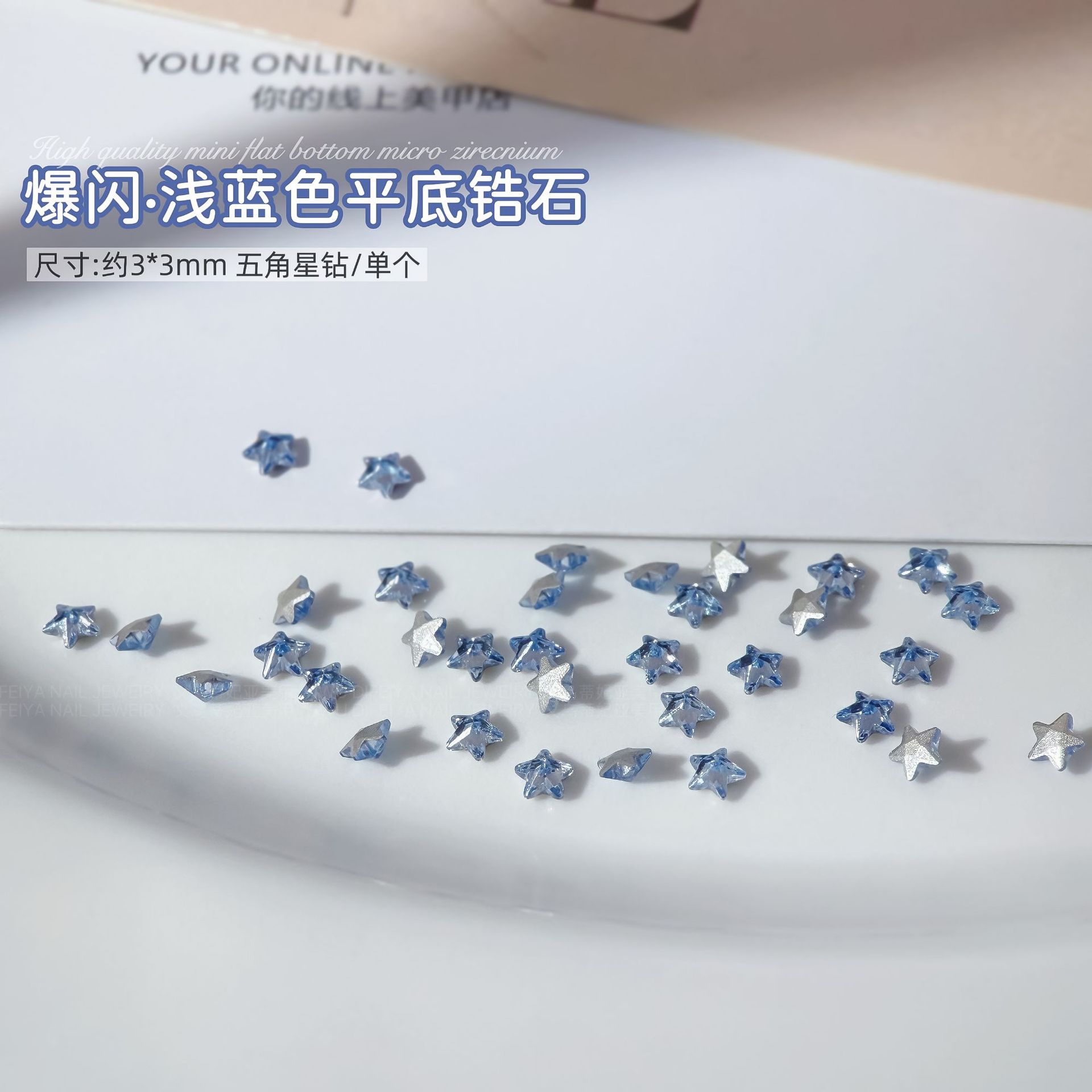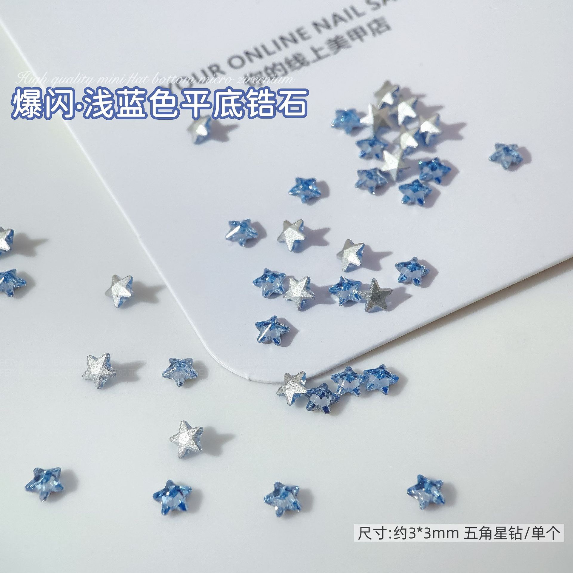 • 라이트 블루 플랫 바닥 지르콘 3*3mm 다섯개 별 싱글