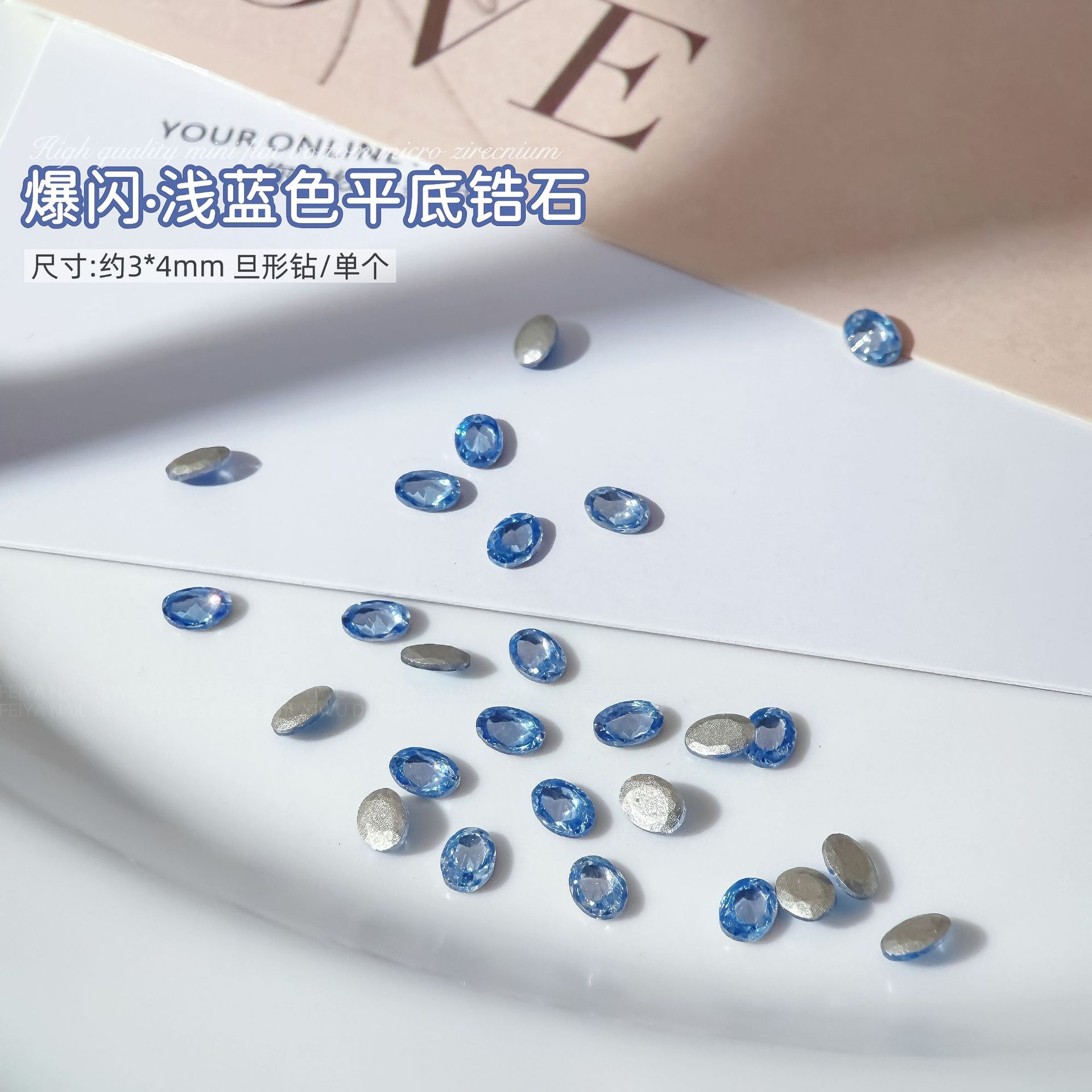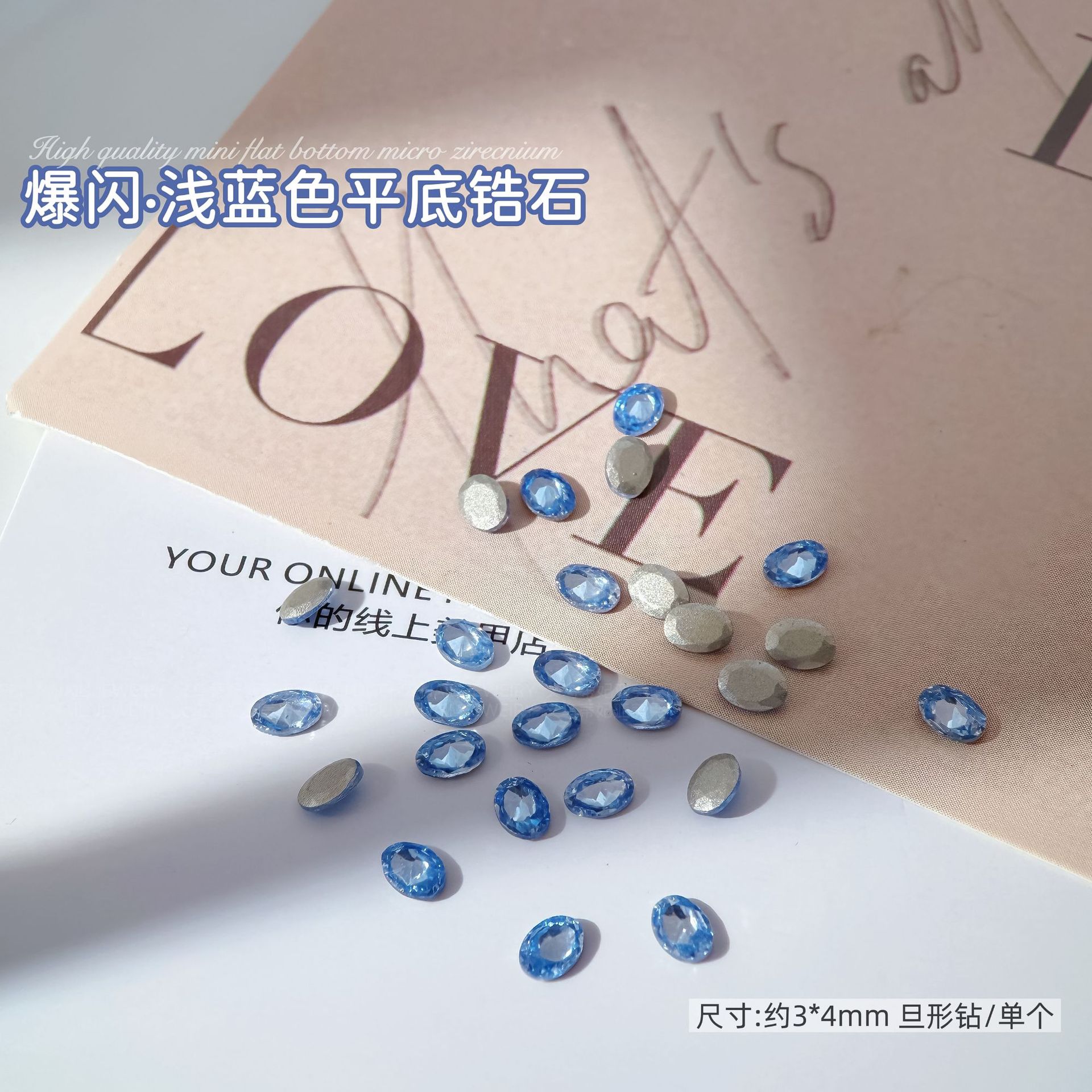 • 라이트 블루 플랫 바닥 지르콘 3*4mm 데니어 모양의 싱글