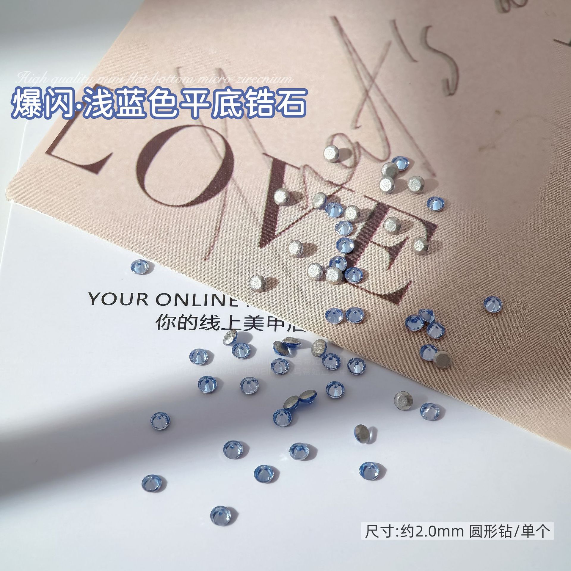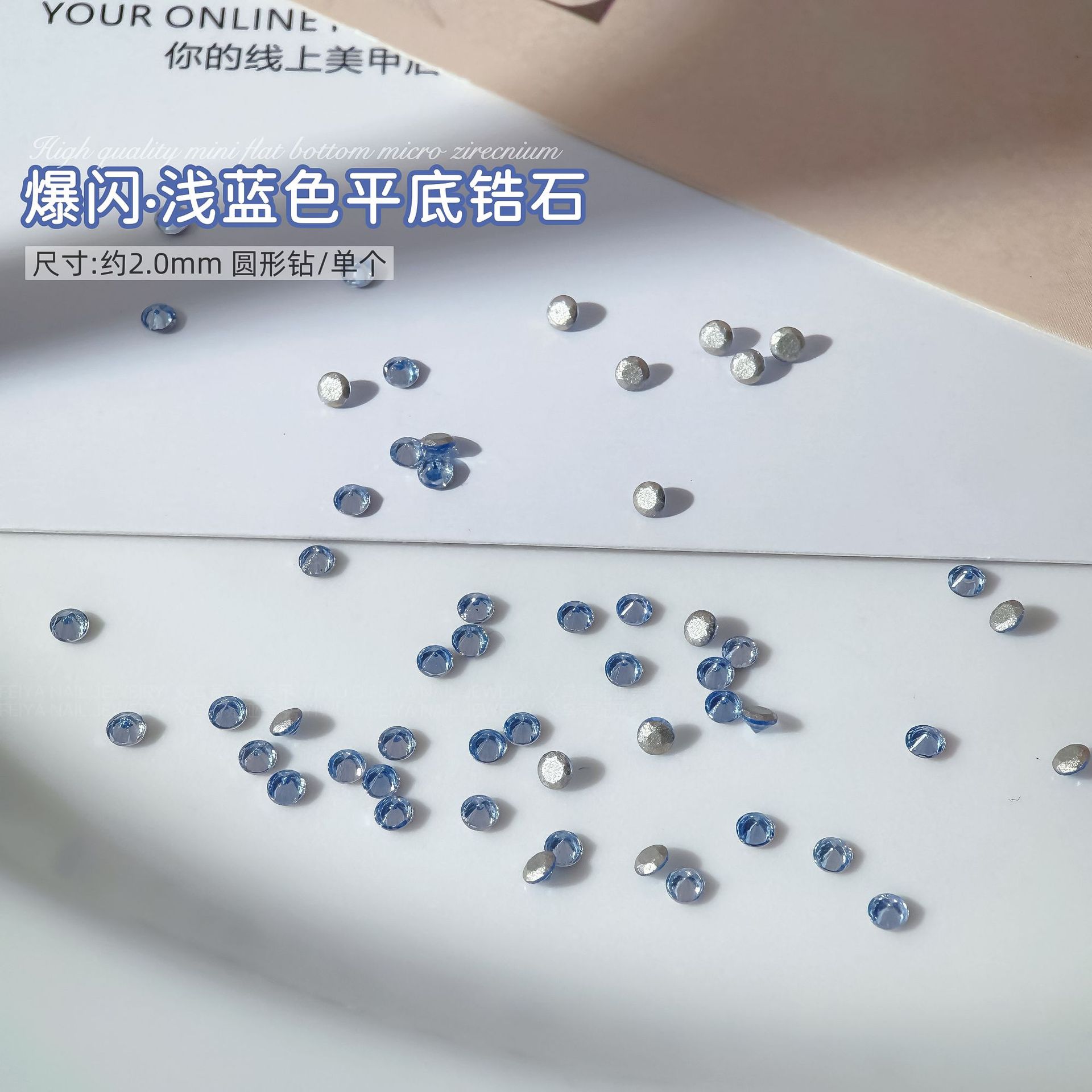 • 라이트 블루 플랫 바닥 지르콘 2.0mm 라운드 싱글