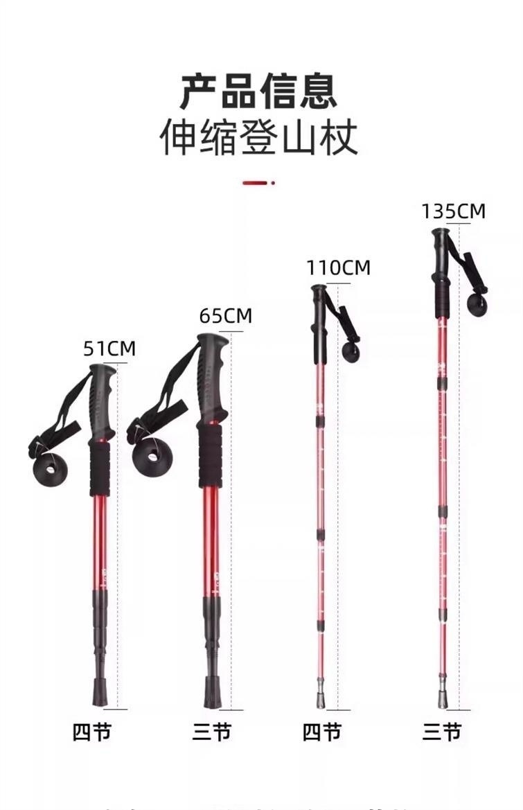 • 4섹션 트레킹 폴 - 직선 핸들 4섹션 레드