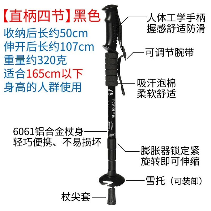 야외용 접이식 지팡이, 하이킹용 지팡이, 걷기용 지팡이, 야외용품, 초경량, 초단거리 등산용 지팡이