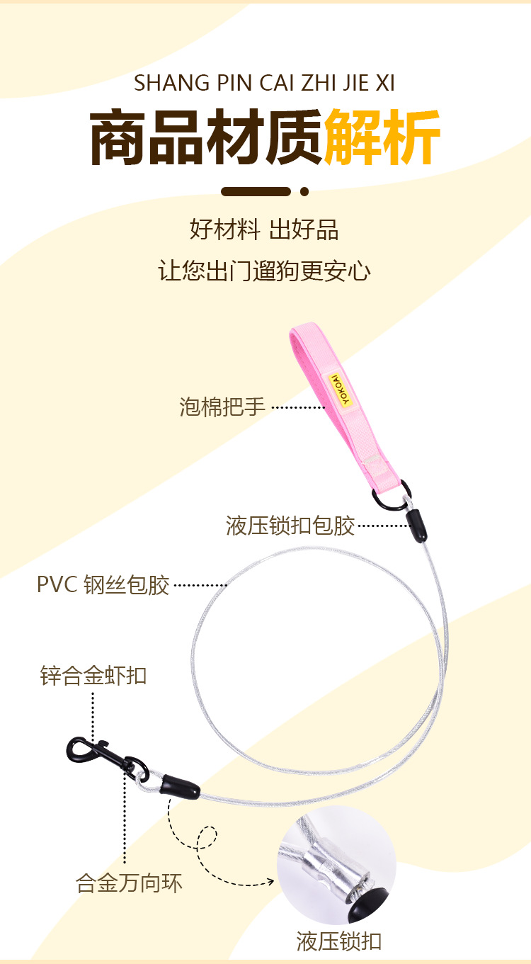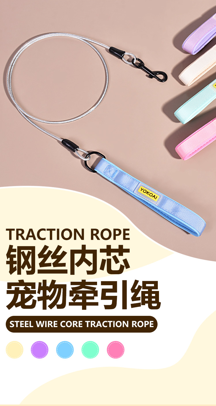 강아지 목줄, 물림 방지 와이어 로프, 강아지 목줄, 철제 강아지 체인, 대형견, 소형견, 두꺼운 강아지 로프, 길어짐