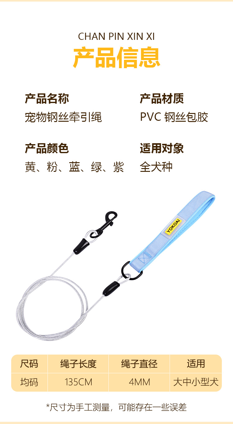 강아지 목줄, 물림 방지 와이어 로프, 강아지 목줄, 철제 강아지 체인, 대형견, 소형견, 두꺼운 강아지 로프, 길어짐스토어 가기