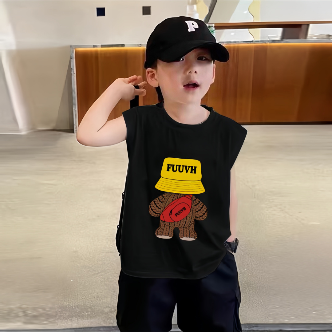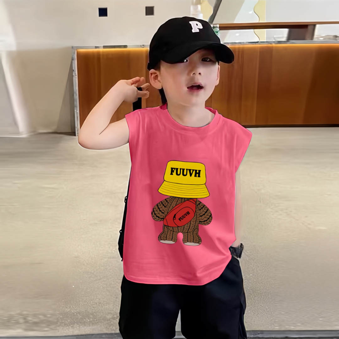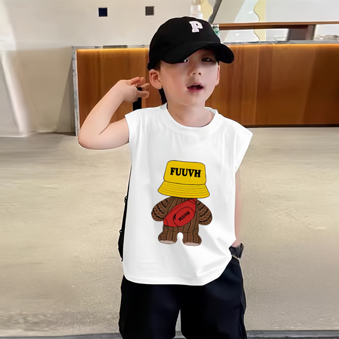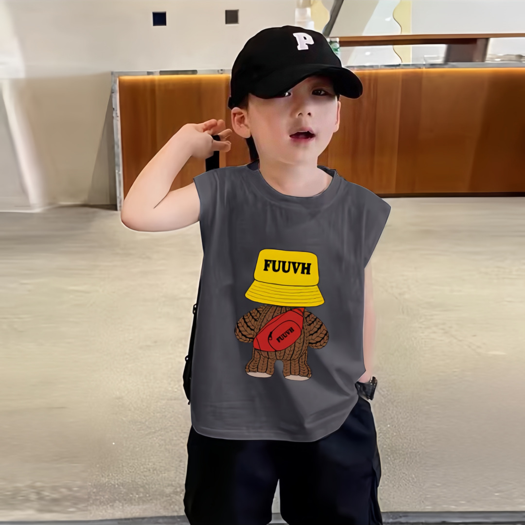소년 여름 순수 코튼 민소매 조끼 얇은 여름 옷 큰 어린이를위한 새로운 만화 인쇄 스타일 조끼스토어 가기