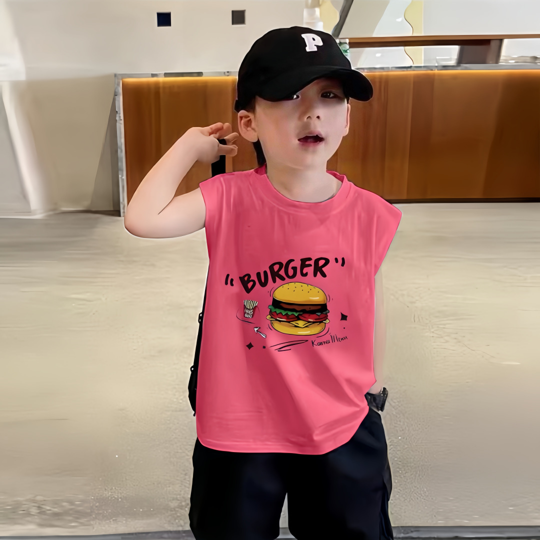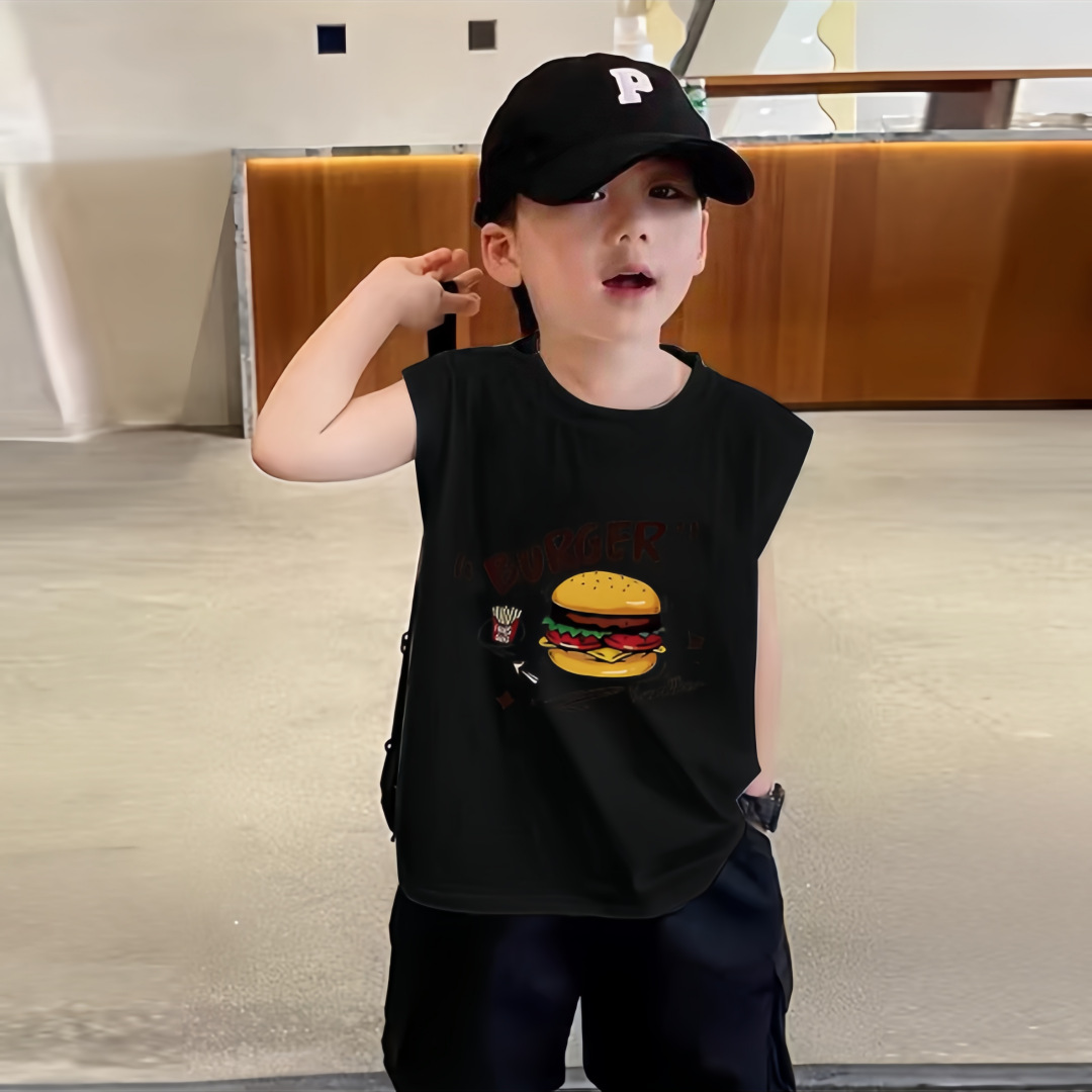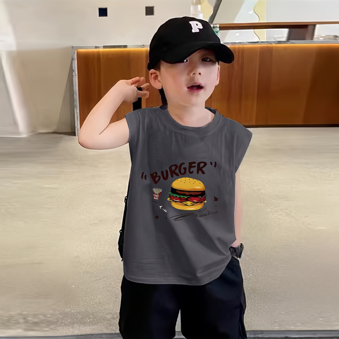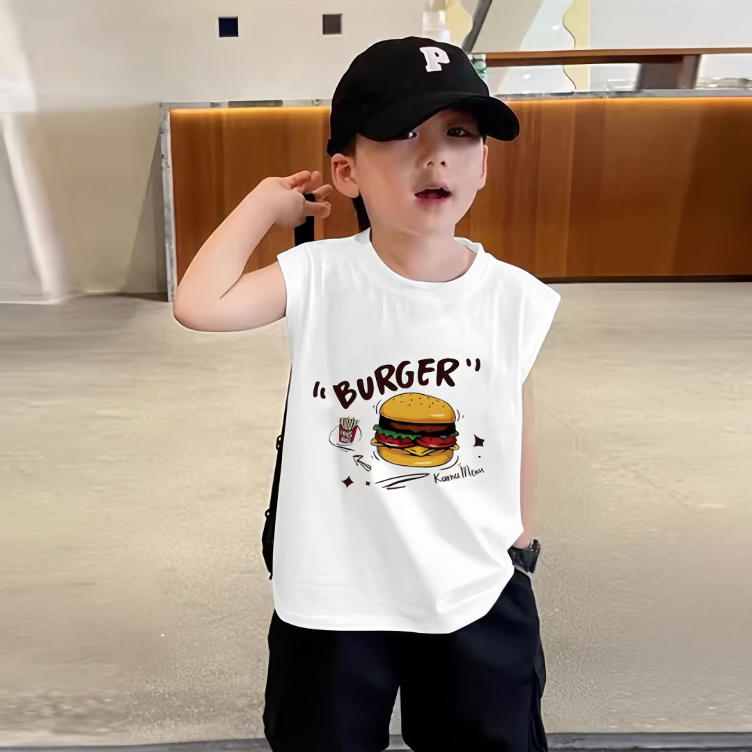 소년 여름 순수 코튼 민소매 조끼 얇은 여름 옷 큰 어린이를위한 새로운 만화 인쇄 스타일 조끼스토어 가기