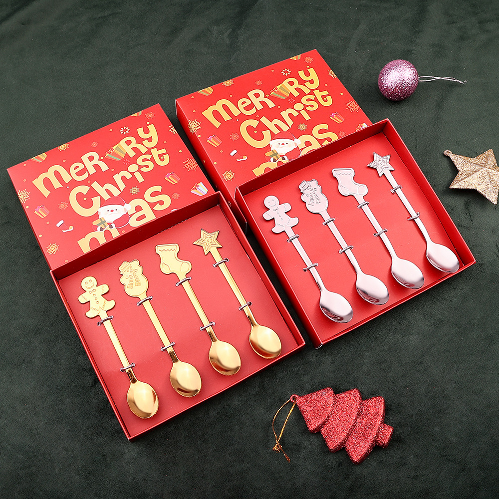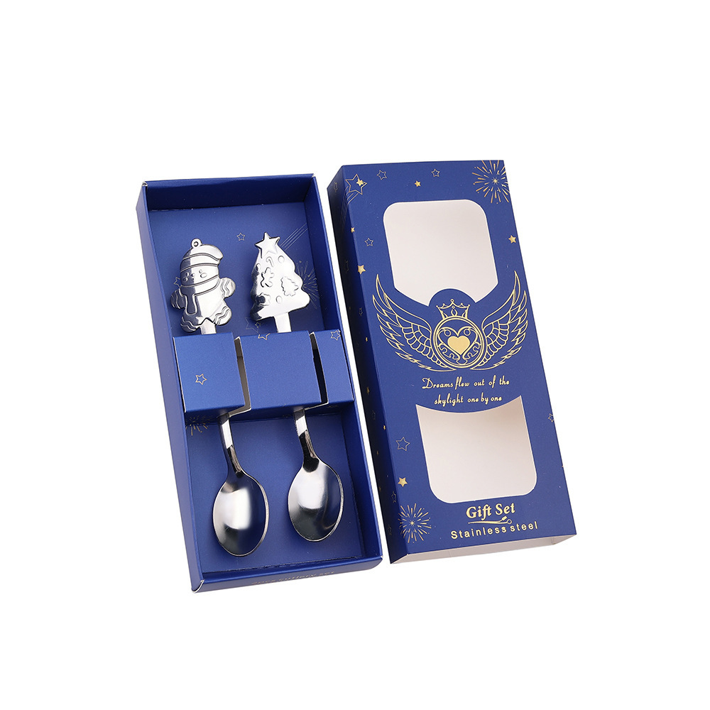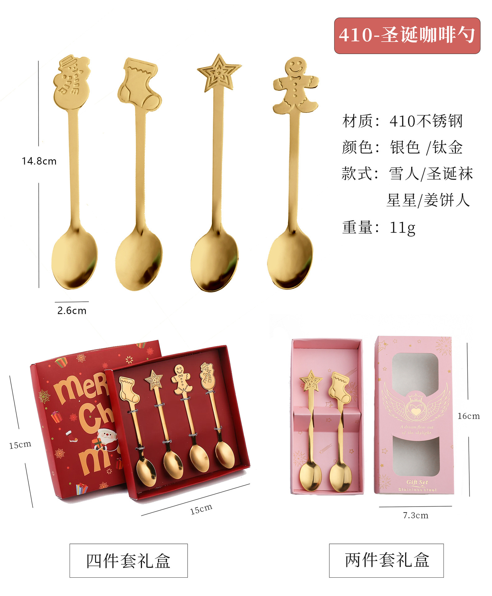 크리 에이 티브 크리스마스 커피 스푼 크로스 보더 스테인레스 스틸 식기 만화 디저트 스푼 믹싱 스푼 휴일 선물 상자 세트