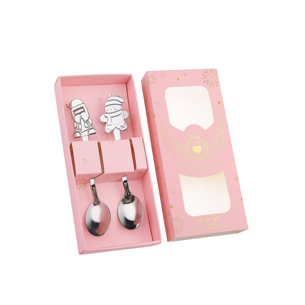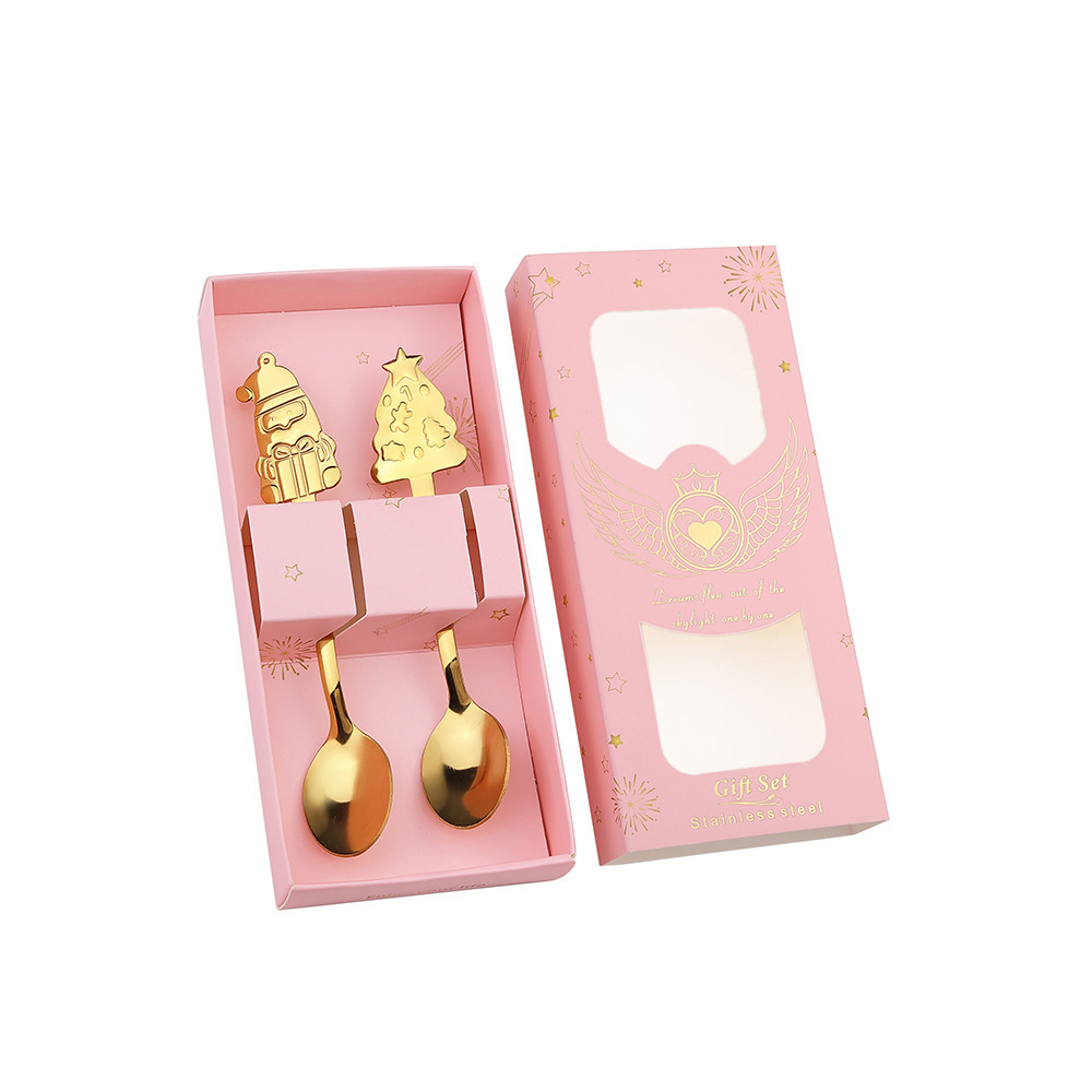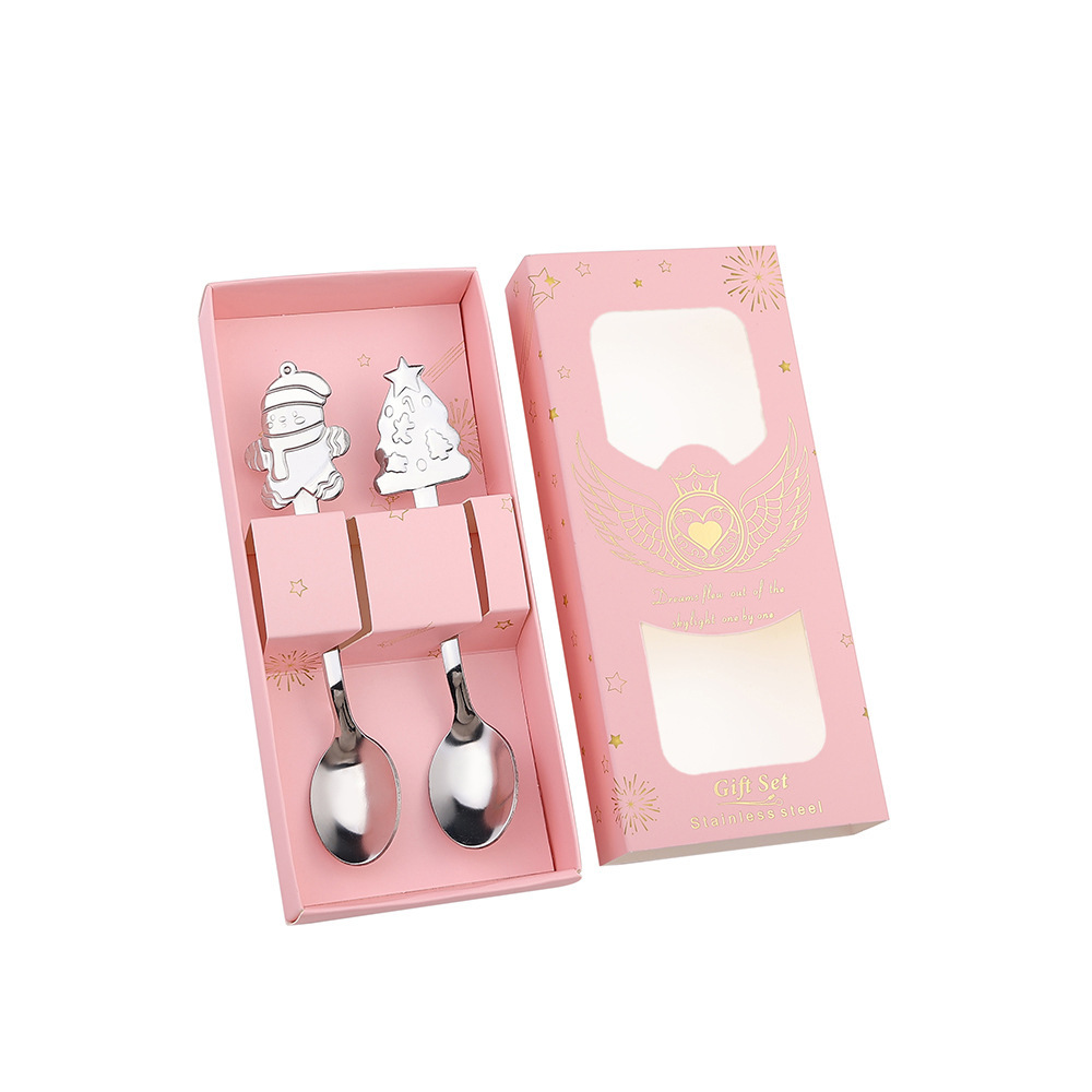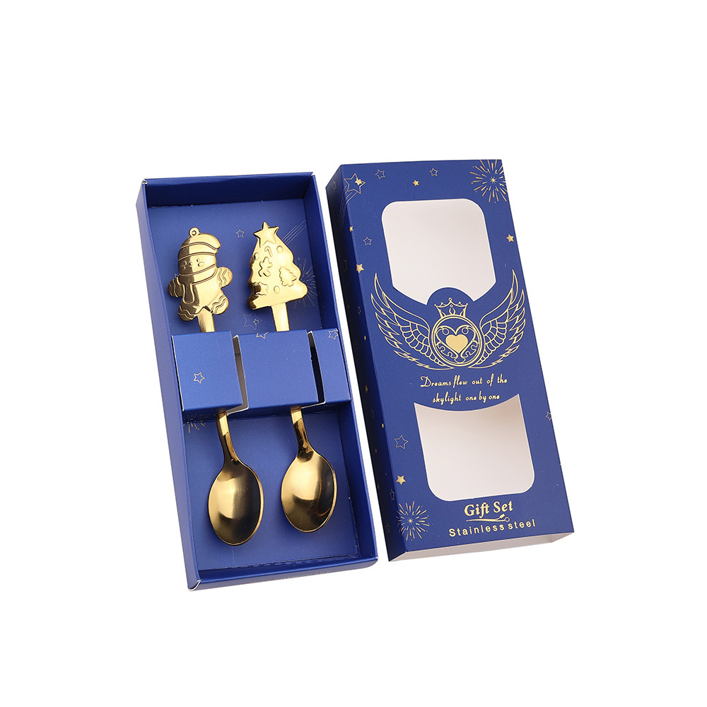 크리 에이 티브 크리스마스 커피 스푼 크로스 보더 스테인레스 스틸 식기 만화 디저트 스푼 믹싱 스푼 휴일 선물 상자 세트
