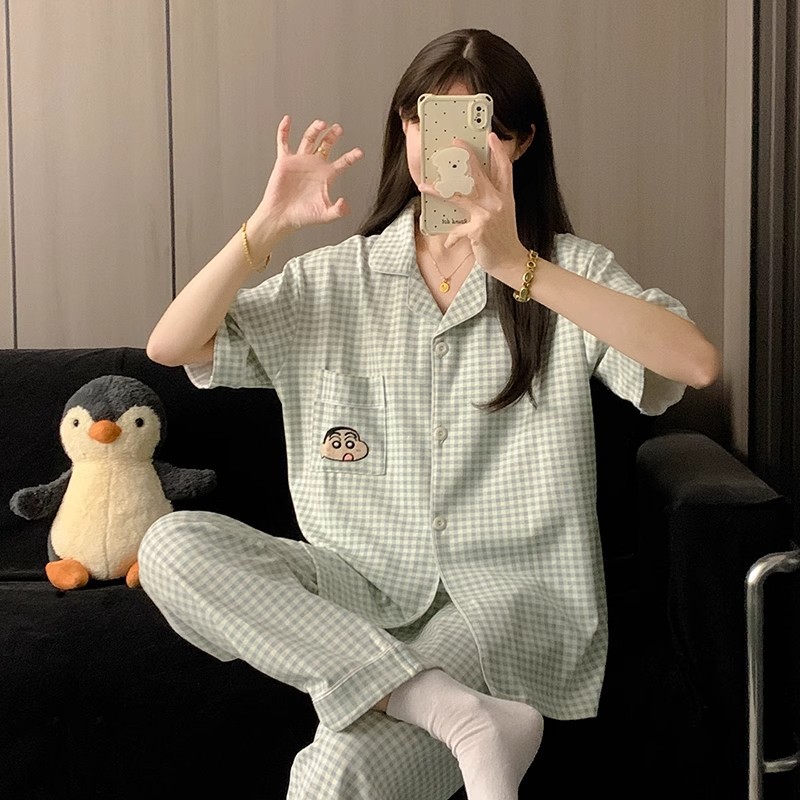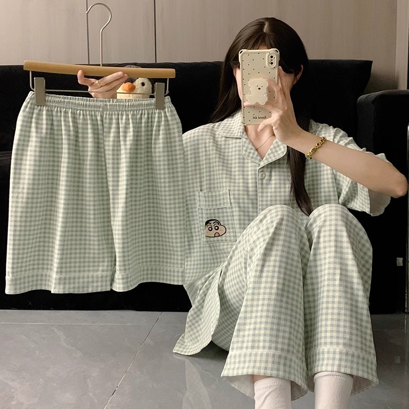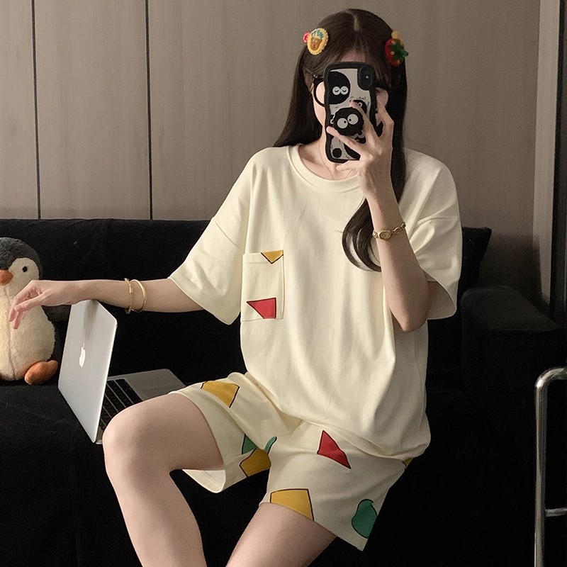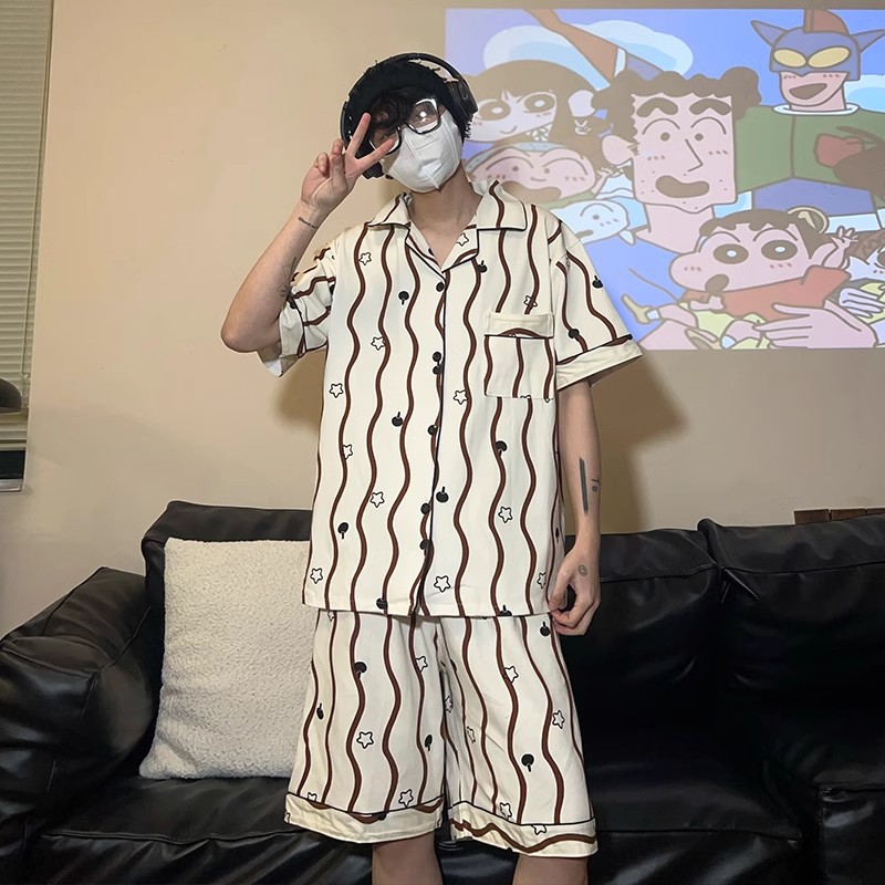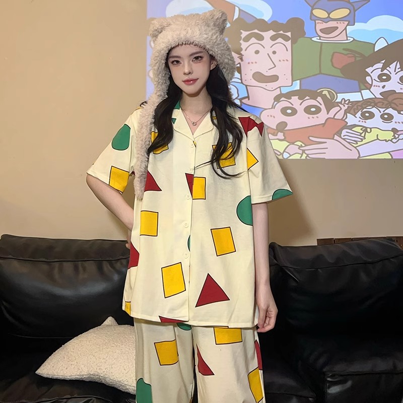 인터넷 연예인 크레용 신짱 커플 잠옷 여자 친구 선물 남자와 여자 여름 순면 반팔 3 피스 홈웨어 세트스토어 가기