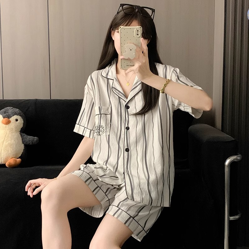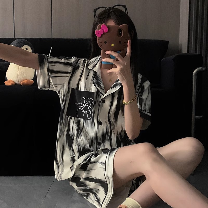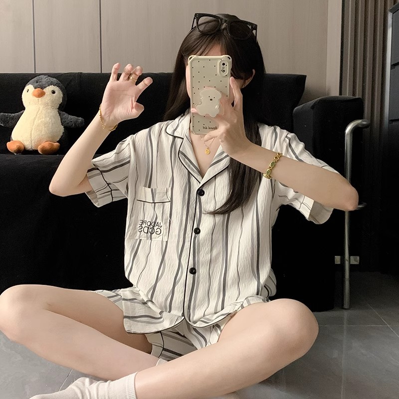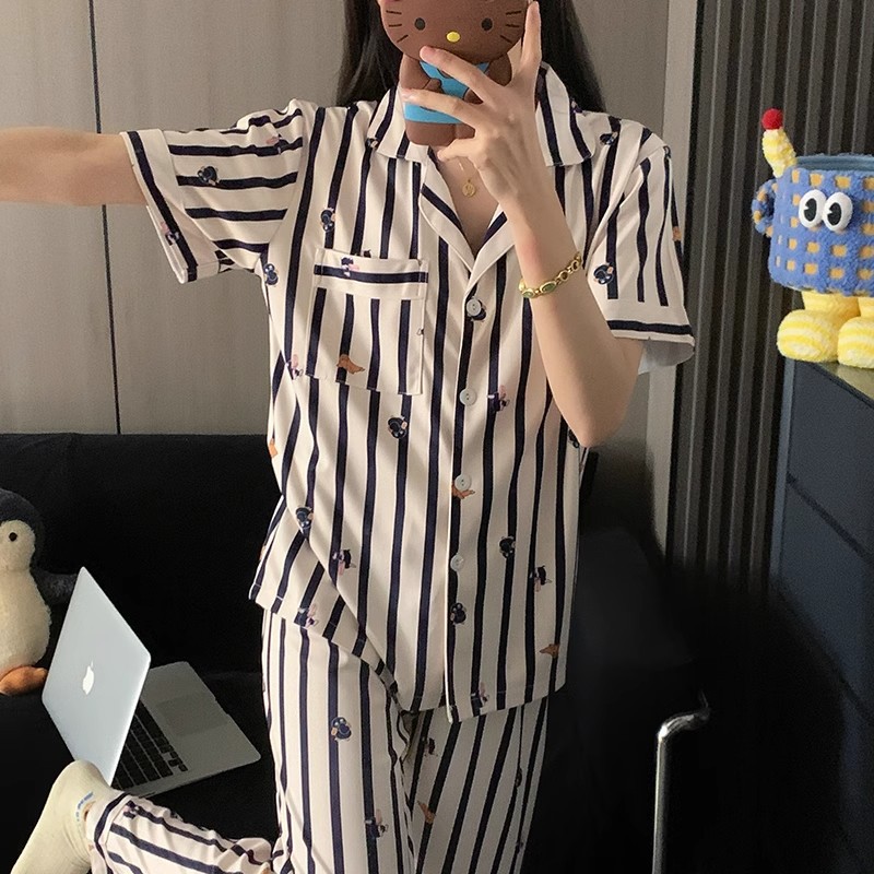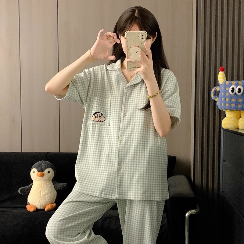인터넷 연예인 크레용 신짱 커플 잠옷 여자 친구 선물 남자와 여자 여름 순면 반팔 3 피스 홈웨어 세트스토어 가기