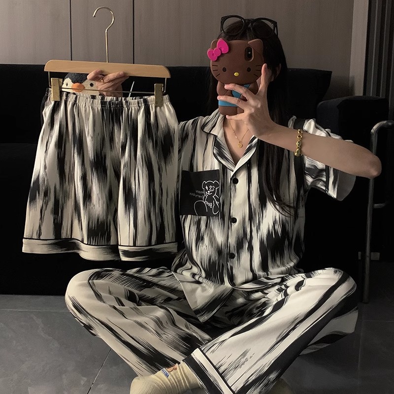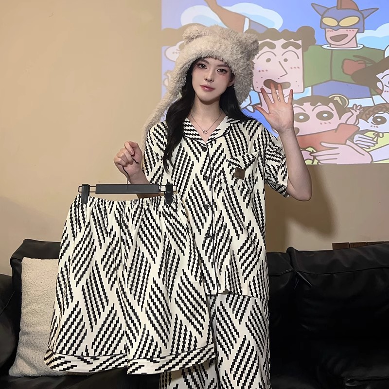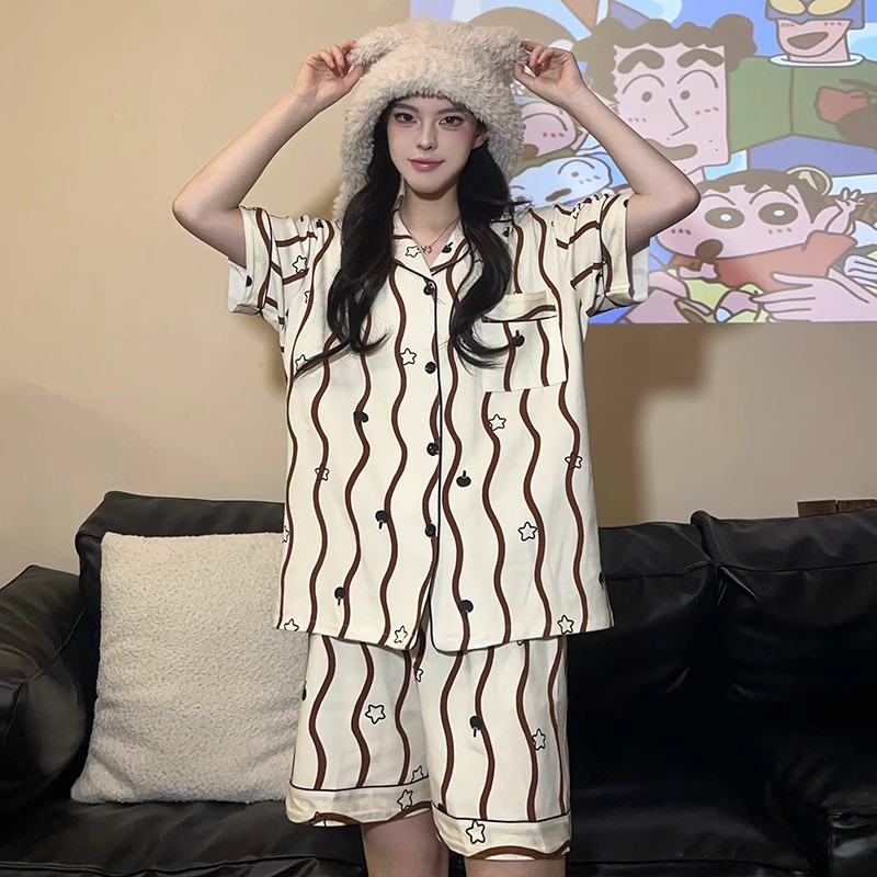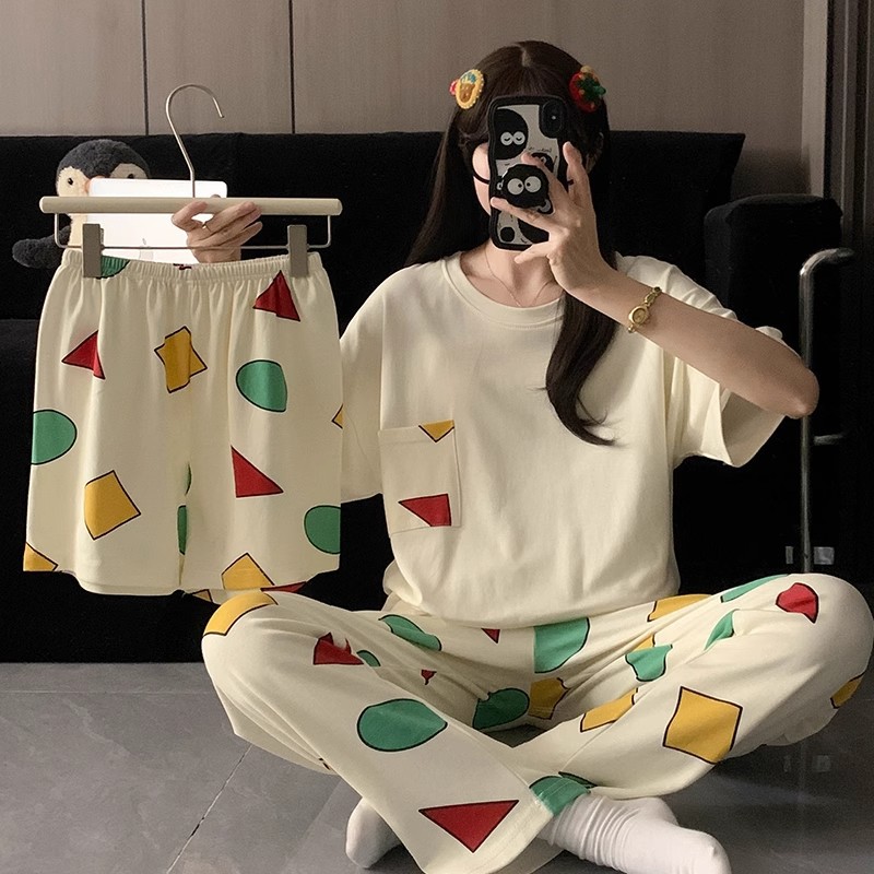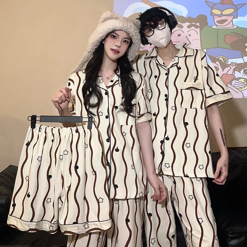 인터넷 연예인 크레용 신짱 커플 잠옷 여자 친구 선물 남자와 여자 여름 순면 반팔 3 피스 홈웨어 세트