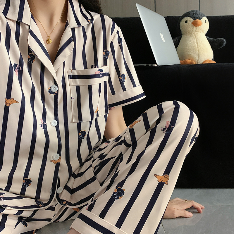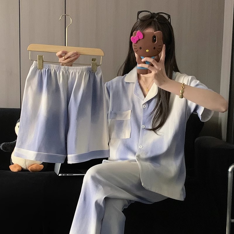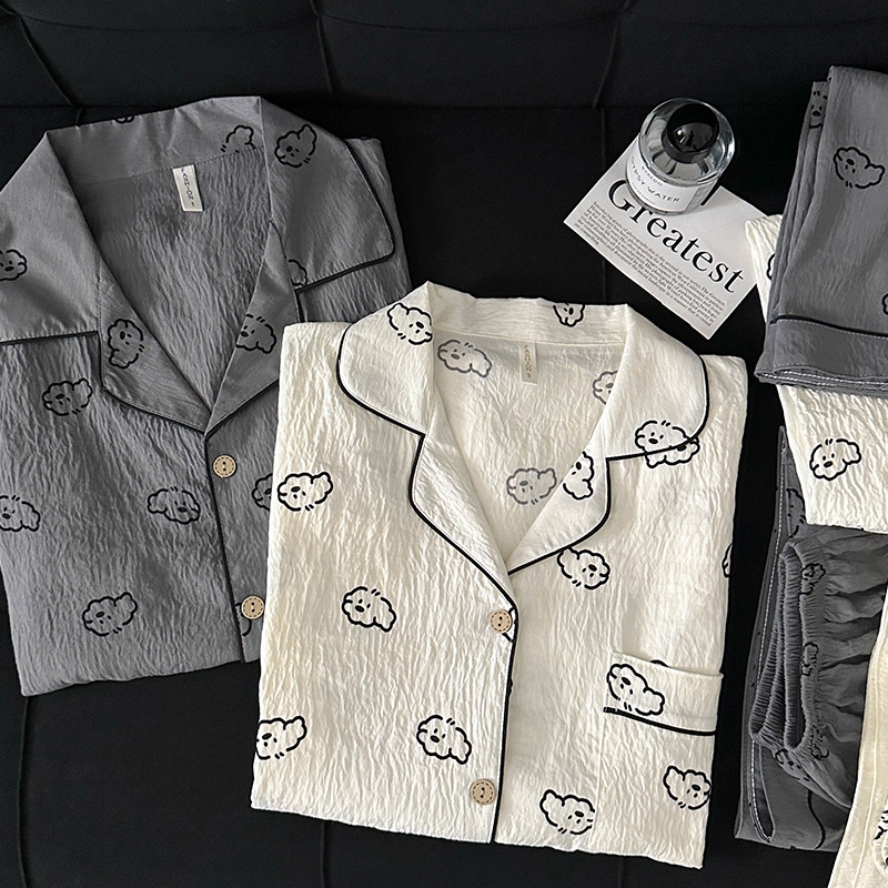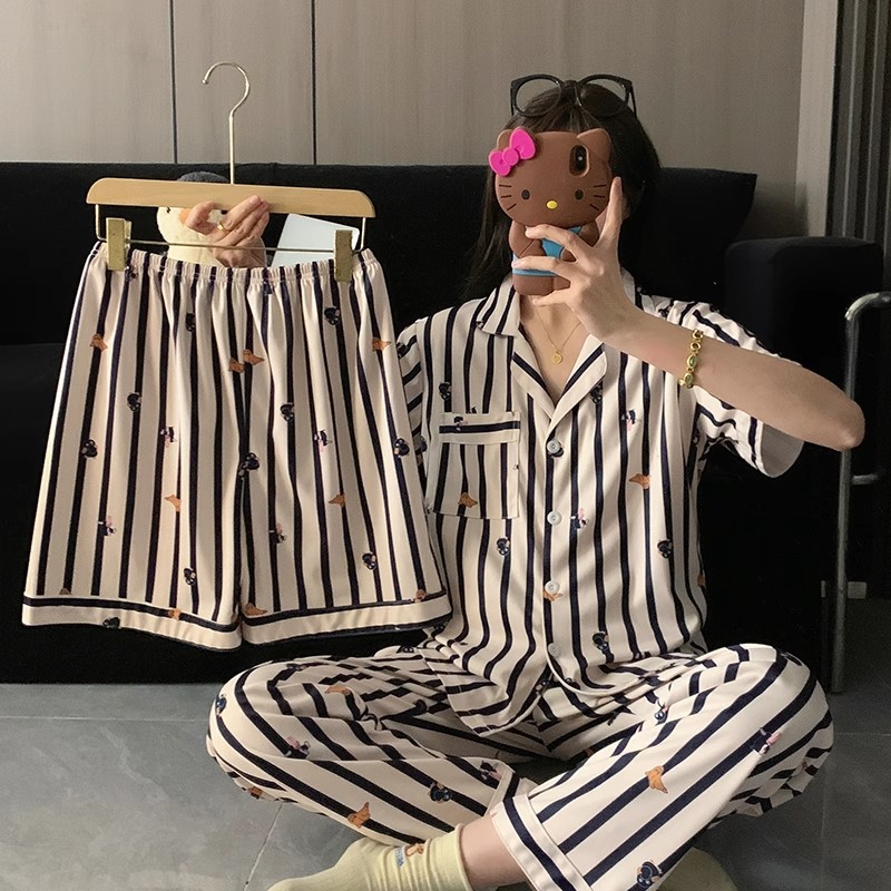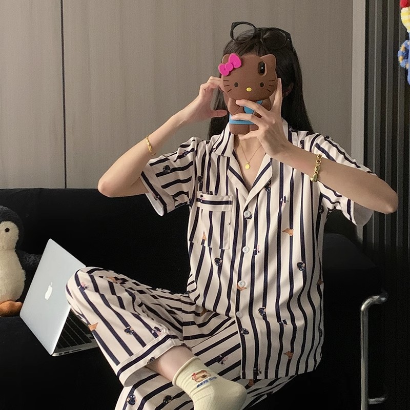 인터넷 연예인 크레용 신짱 커플 잠옷 여자 친구 선물 남자와 여자 여름 순면 반팔 3 피스 홈웨어 세트