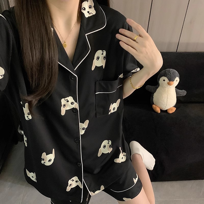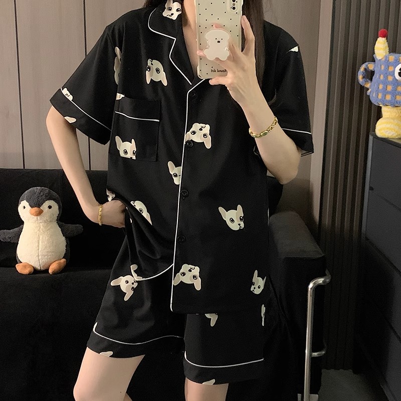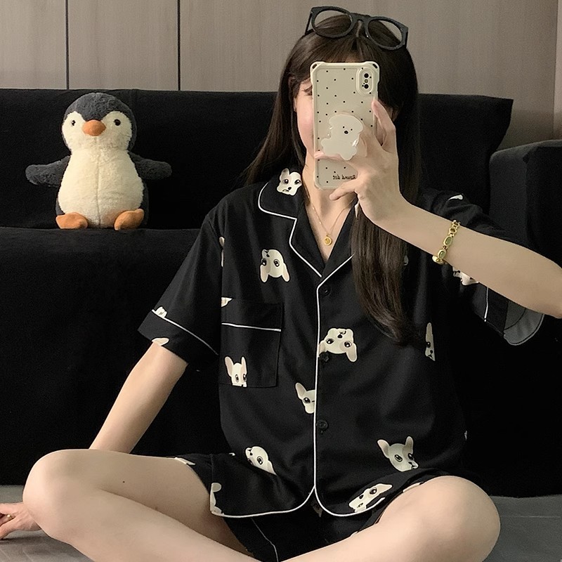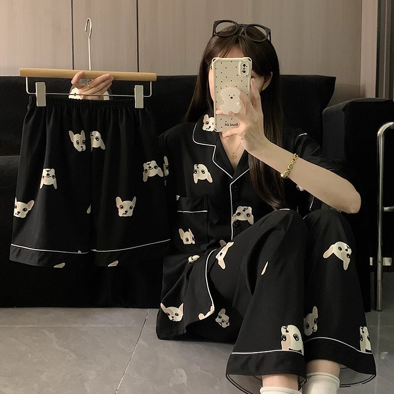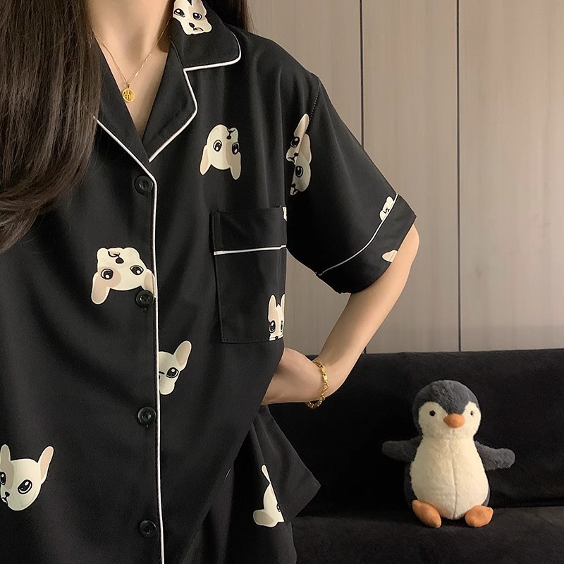 • 평직-검은색 강아지 [반팔+반바지+바지]