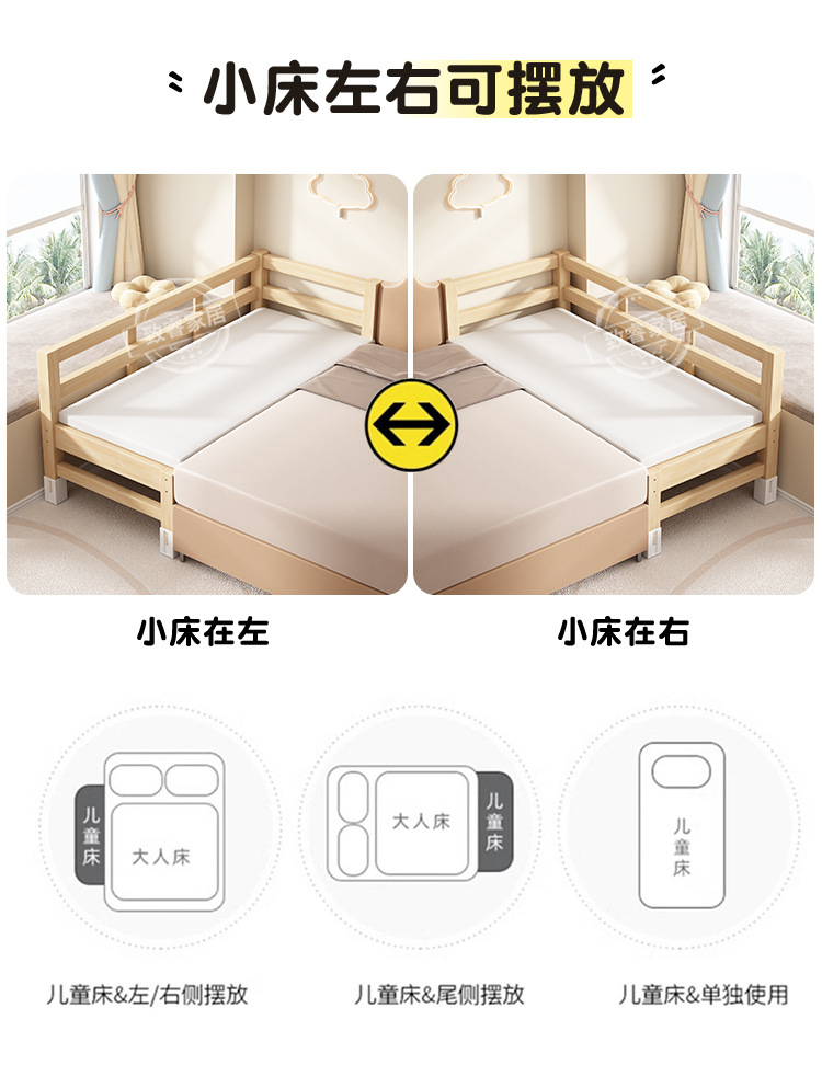 • 3면 가드레일 + 5cm 코코넛 야자 매트리스 + 침대 서라운드 [침대 다리 16단계 조절]