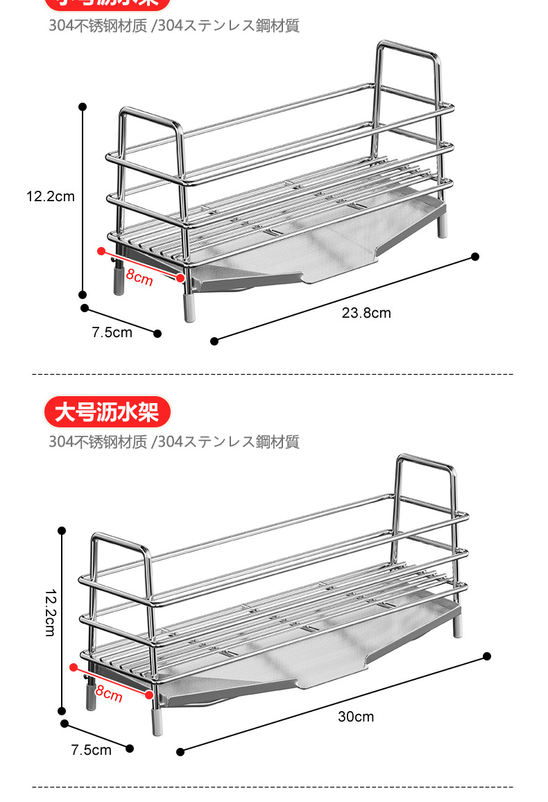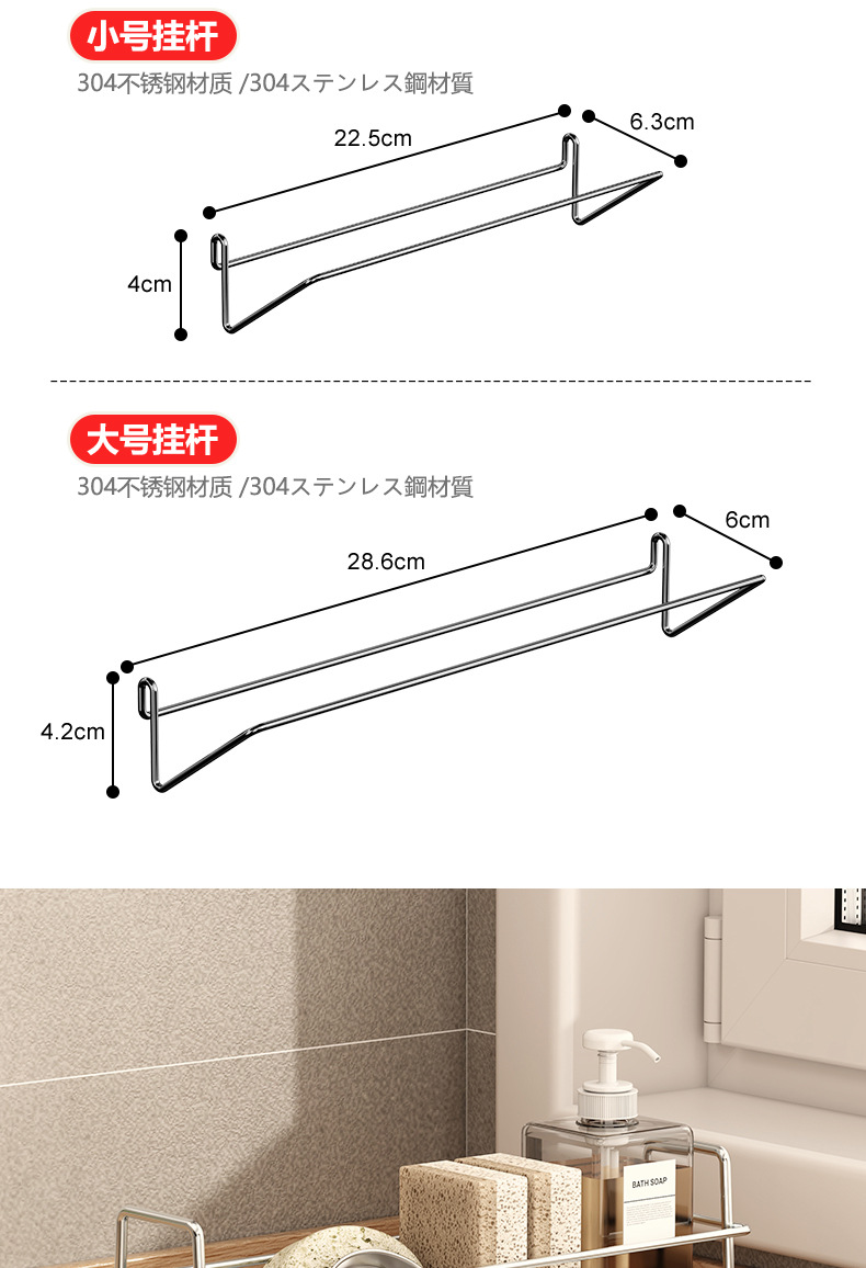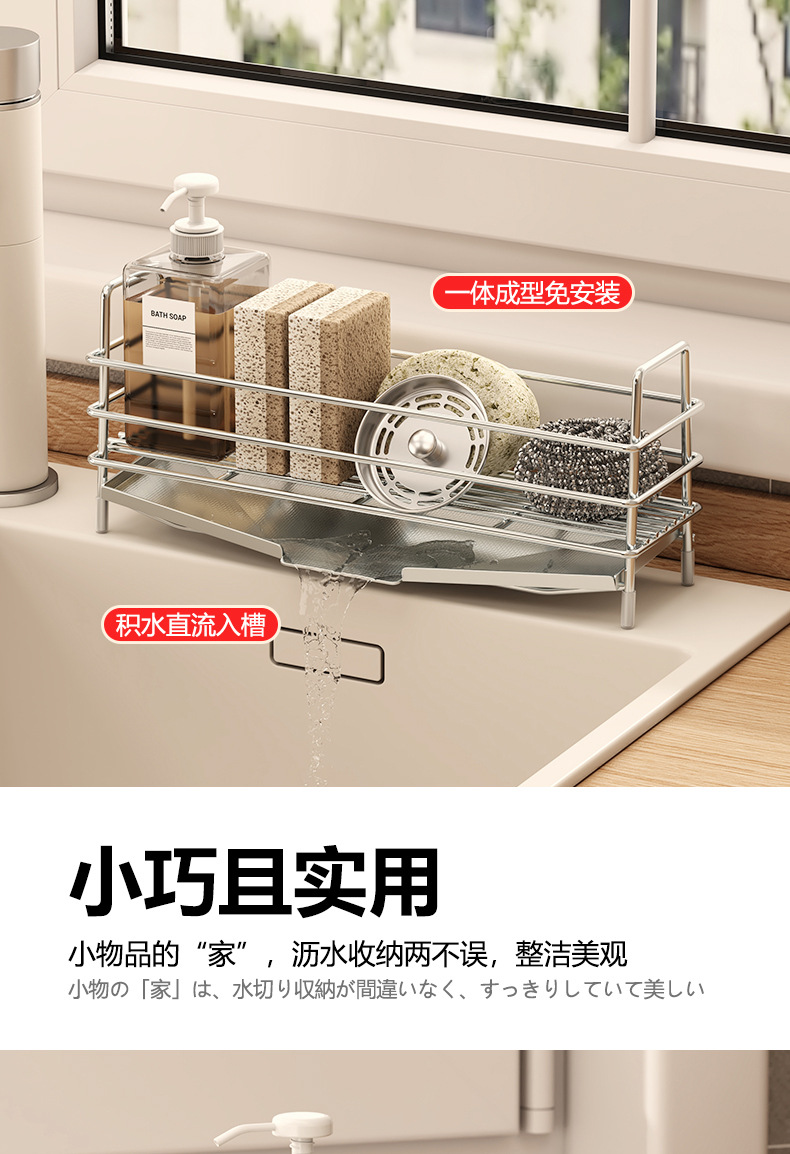 • 소형 304 스펀지 배수 랙 + 걸이 막대