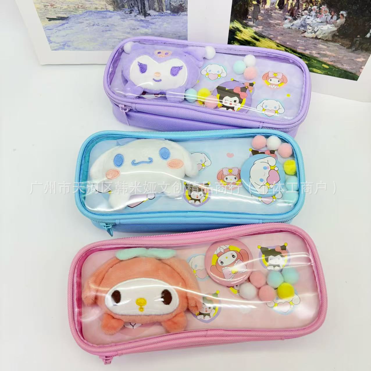 대외 무역 국경 간 새로운 Labubu 투명 통증 가방 DIY 연필 가방 대용량 다층 학생 보관 문구 가방 배치