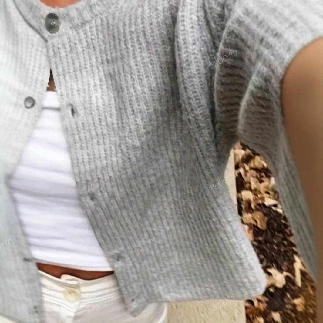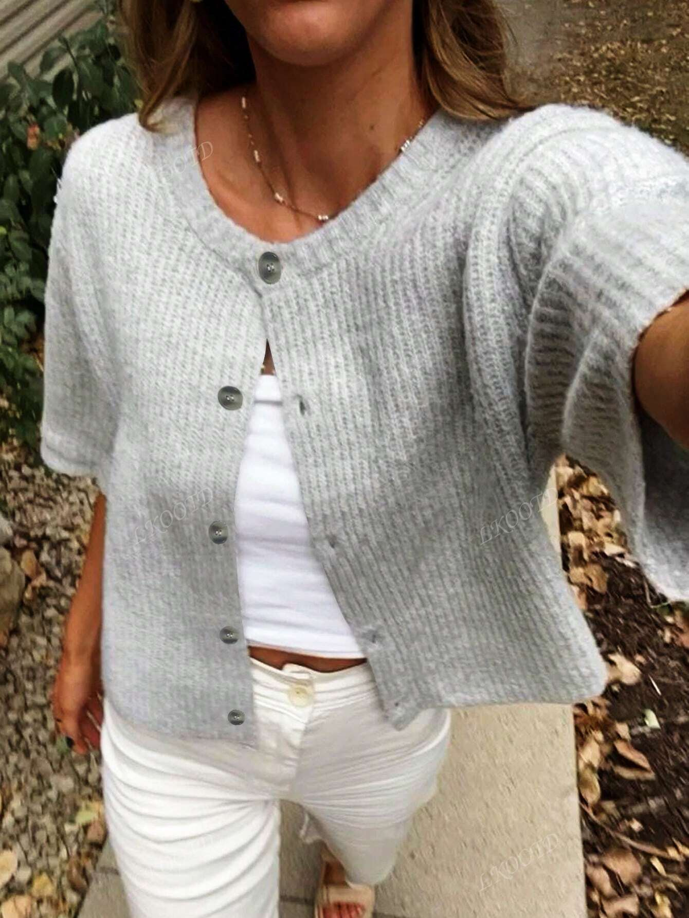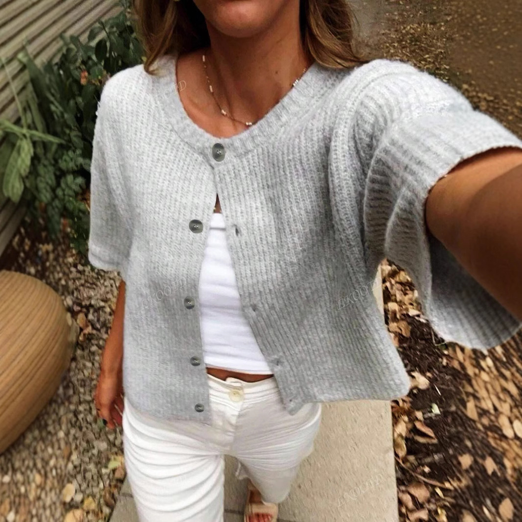 유럽 ​​스타일의 여성의 새로운 카디건 반팔 스웨터 솔리드 컬러 하프 오픈 칼라 버튼 스웨터 여성
