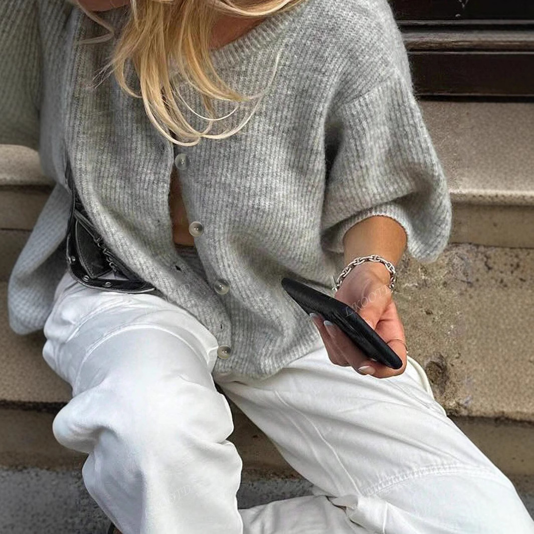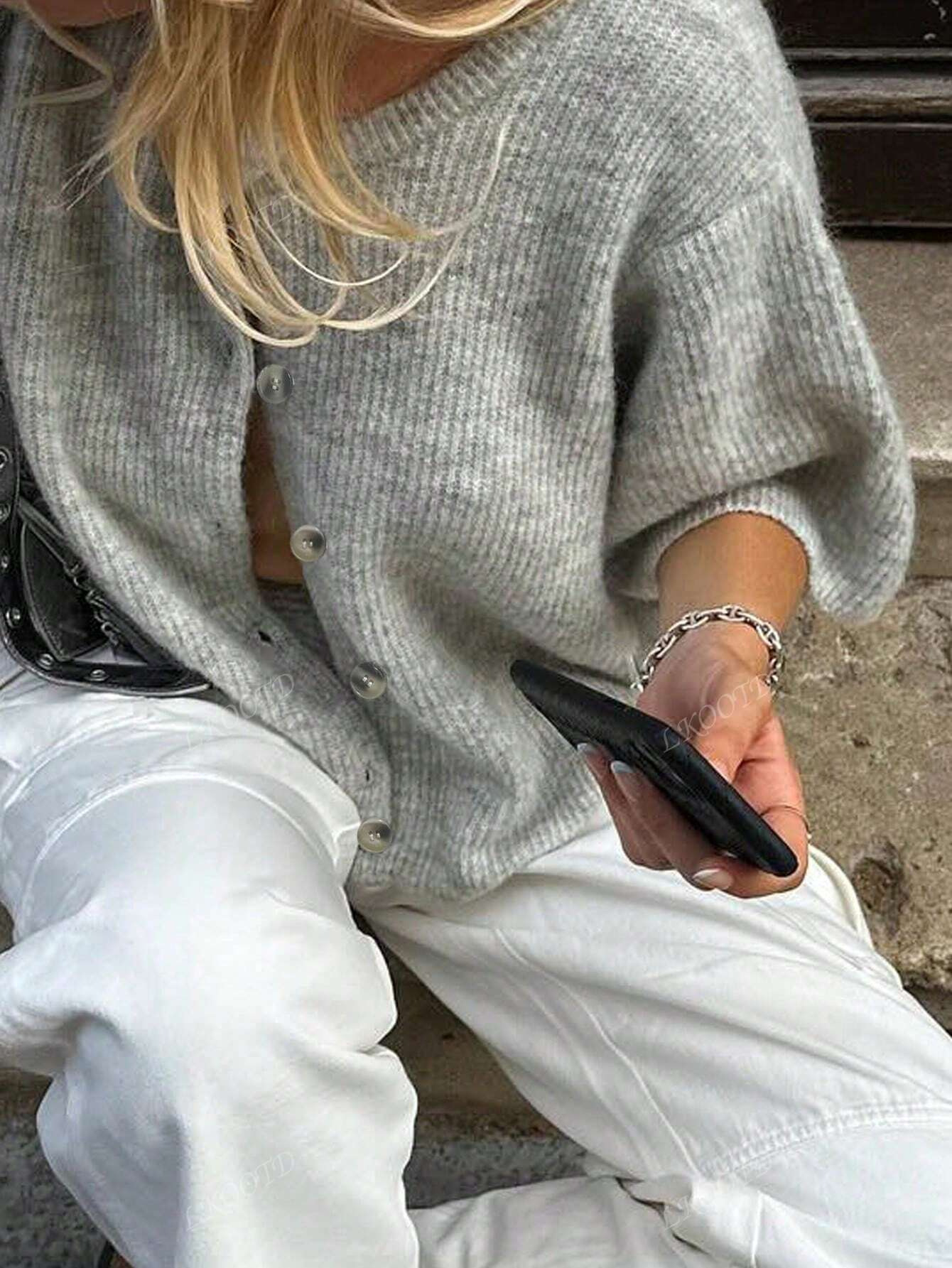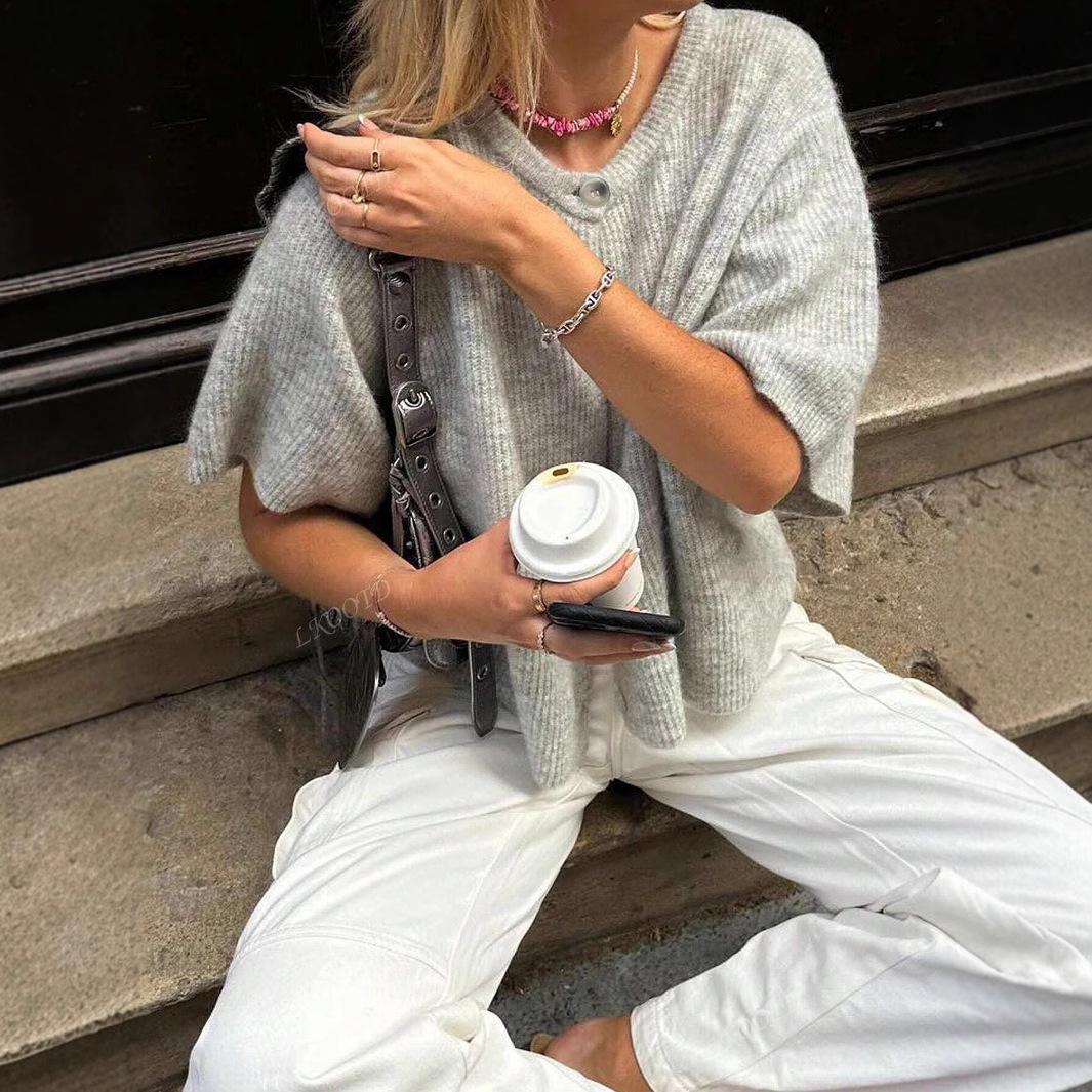 유럽 ​​스타일의 여성의 새로운 카디건 반팔 스웨터 솔리드 컬러 하프 오픈 칼라 버튼 스웨터 여성