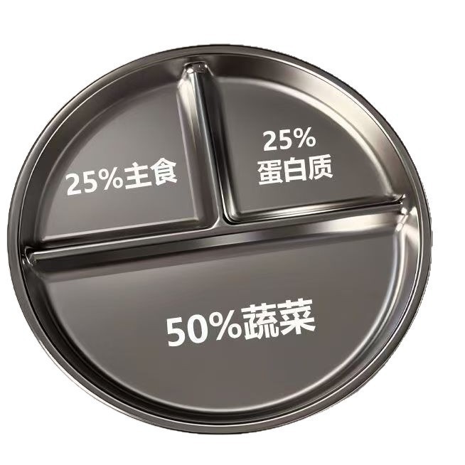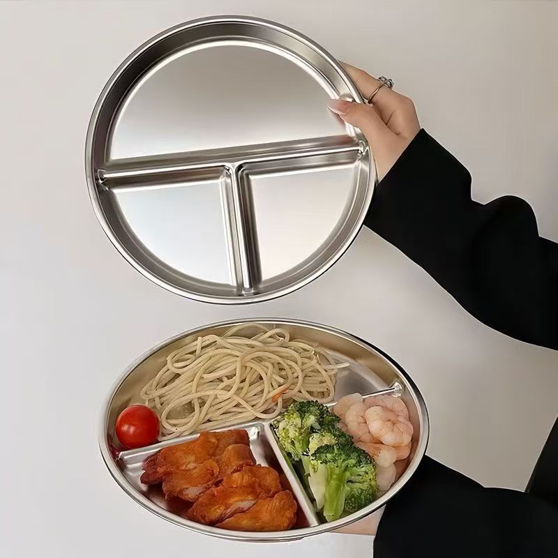 304 스테인레스 스틸 디너 플레이트, 학생용 식품 등급 점심 3칸 원형 플레이트, 지방 감량 디너 플레이트, 가정용 정량 플레이트스토어 가기