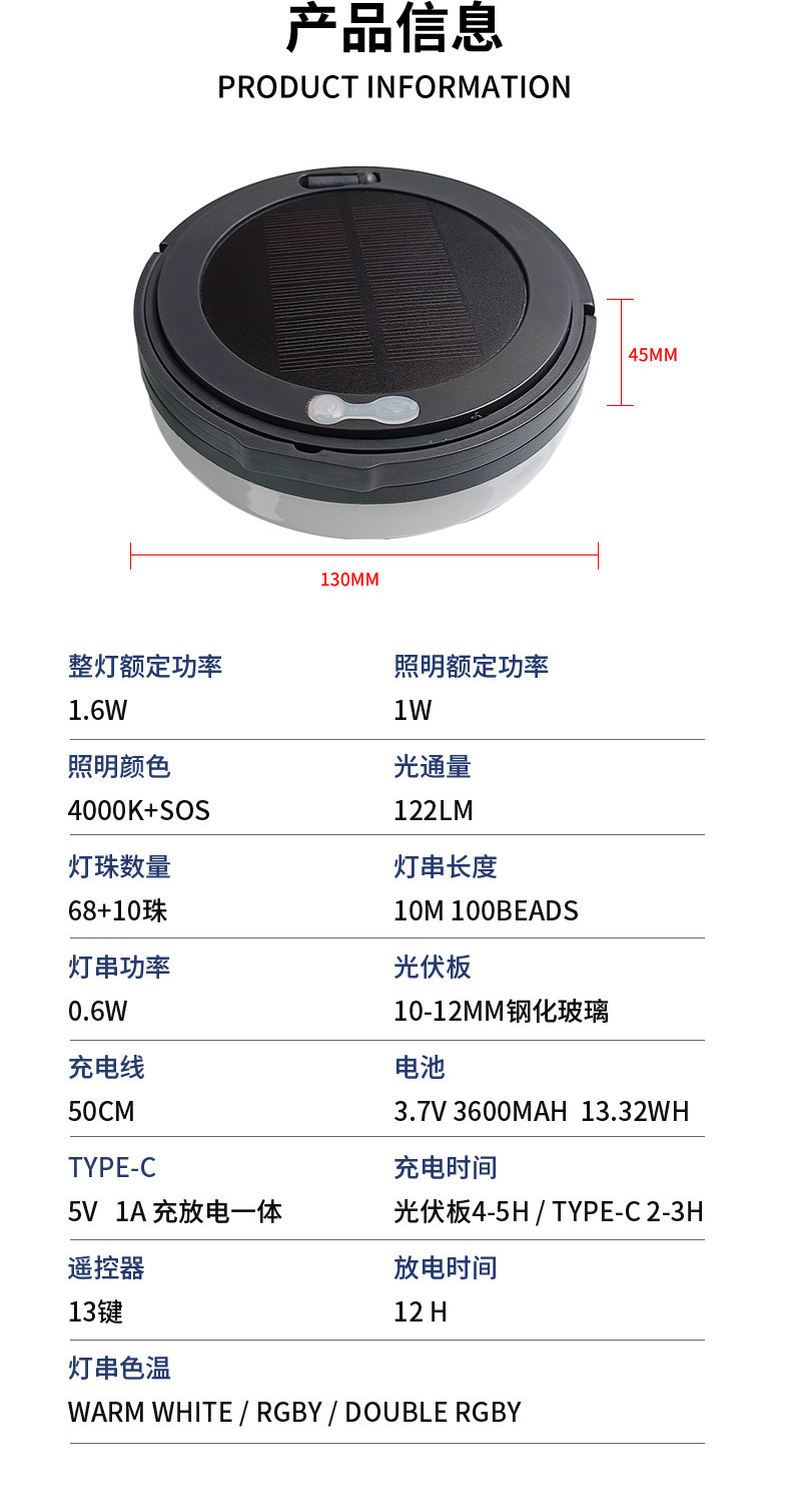 태양광 야외 조명 캠핑 랜턴 방수 수납 캠핑 라이트 스트링 텐트 비상 분위기 조명 휴대용 조명등스토어 가기