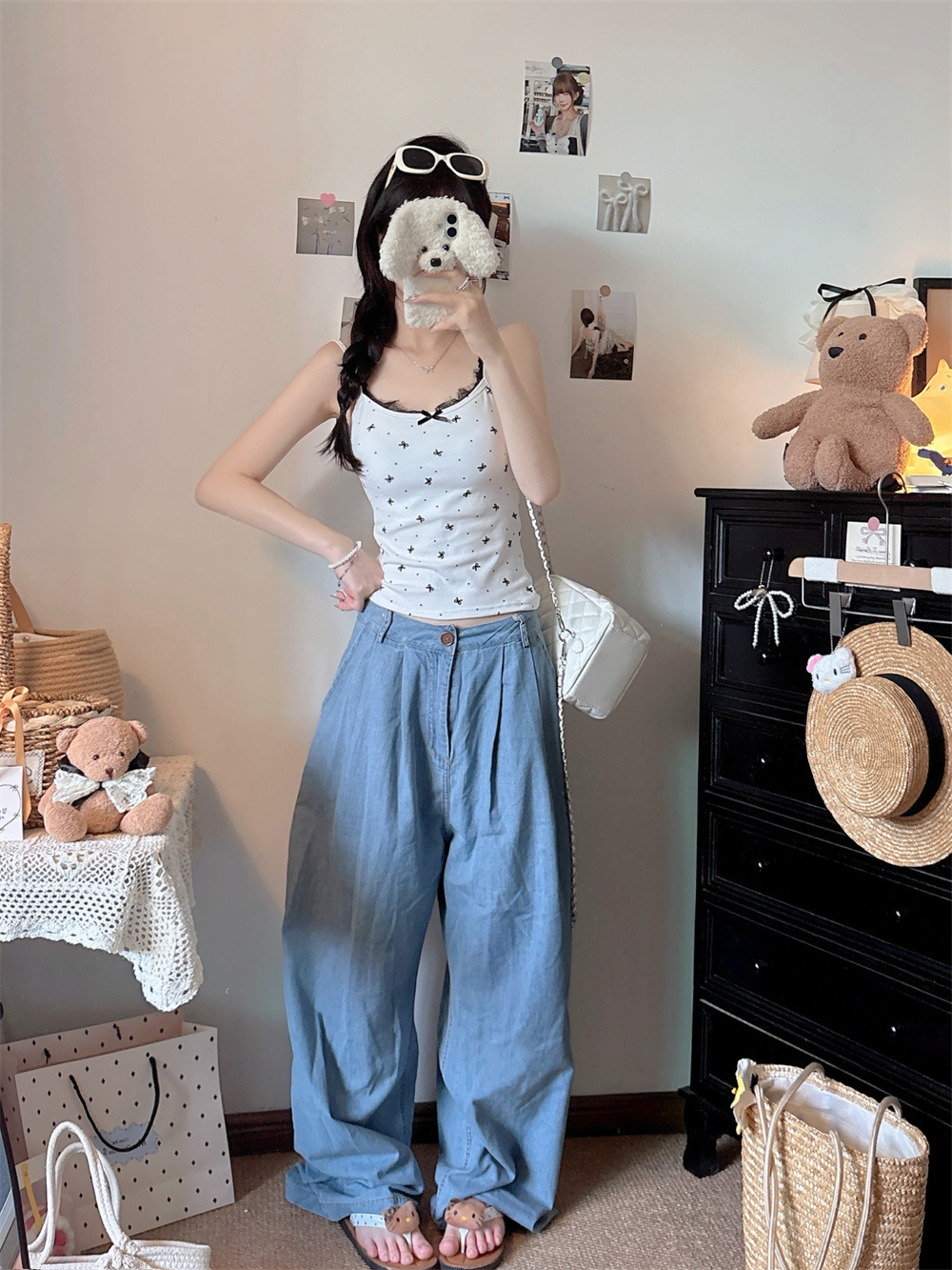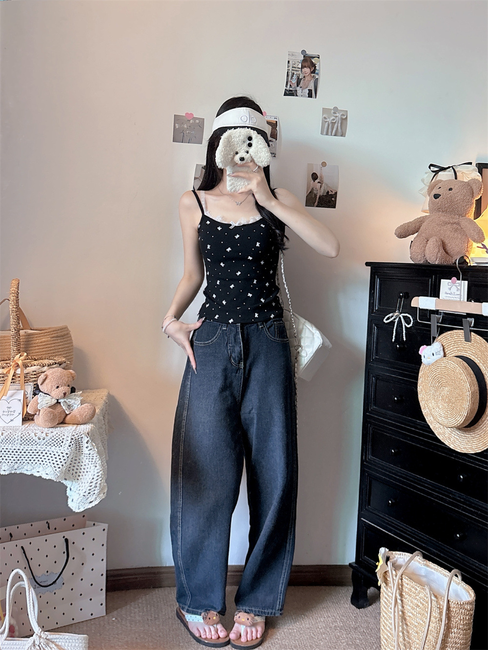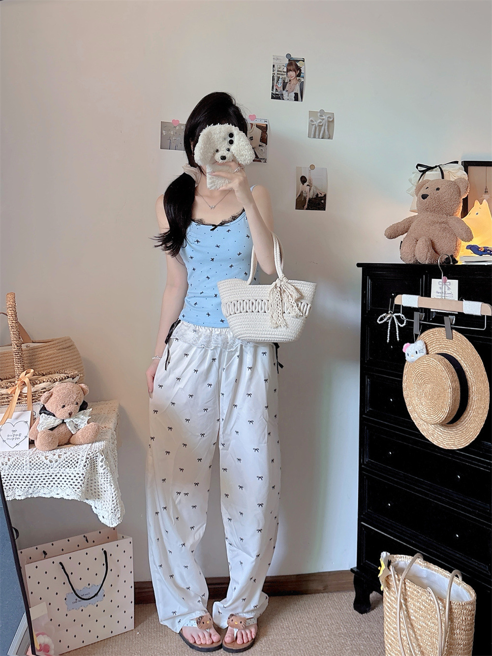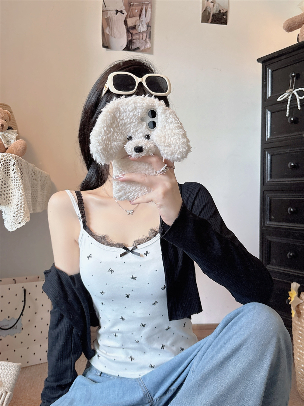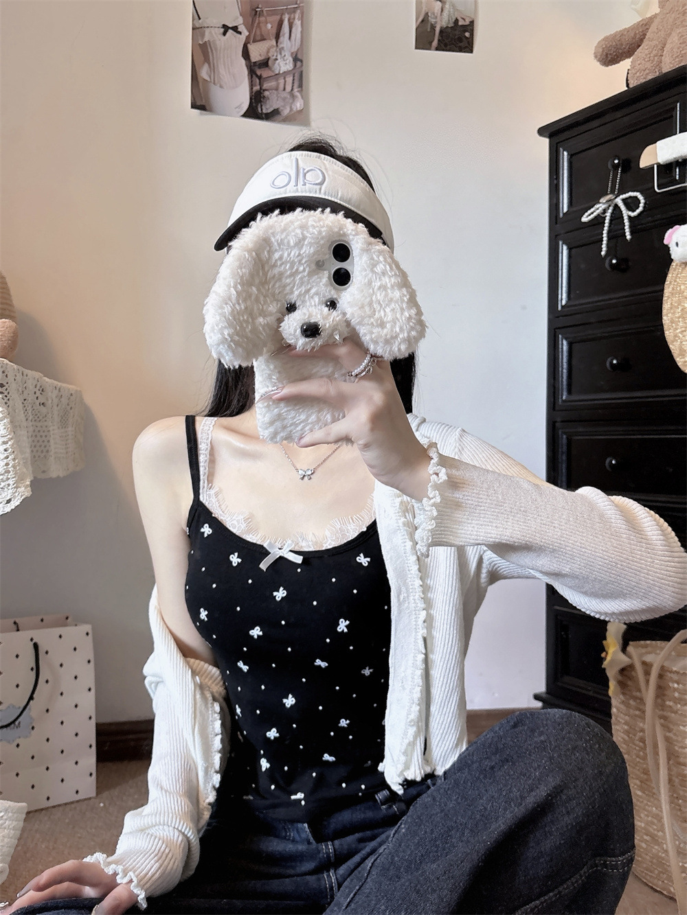 6116 # 여성용 한국식 달콤한 레이스 보우 캐미솔 여름 슬림핏 짧은 아름다운 백 탑(가슴 패드 포함)스토어 가기