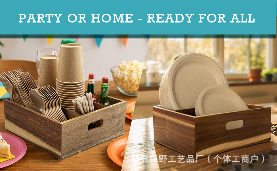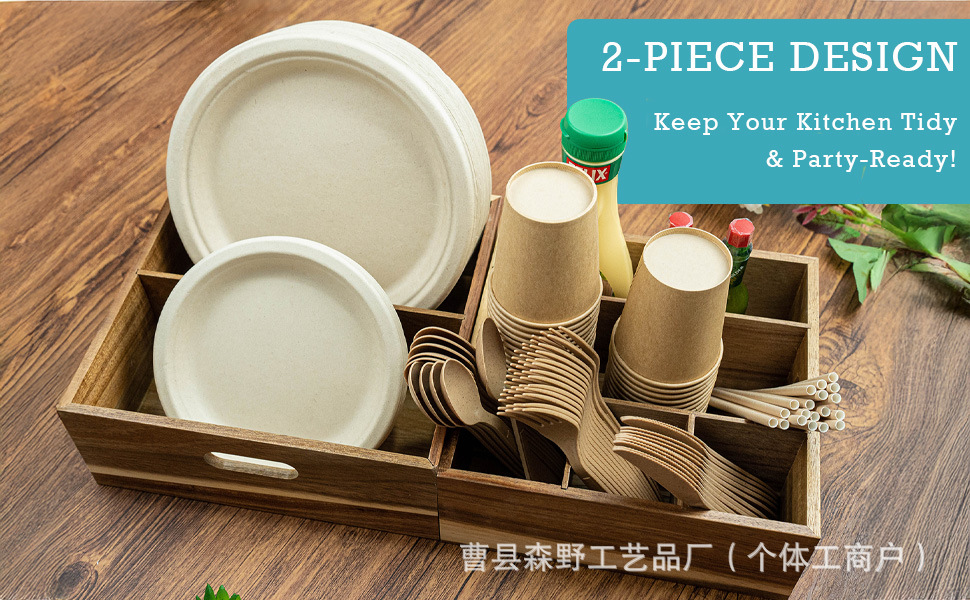 레스토랑 단단한 나무 보관 상자 나무 식기 상자 분리형 주방 보관 선반 밀짚 종이컵 홀더 종이 접시 홀더스토어 가기