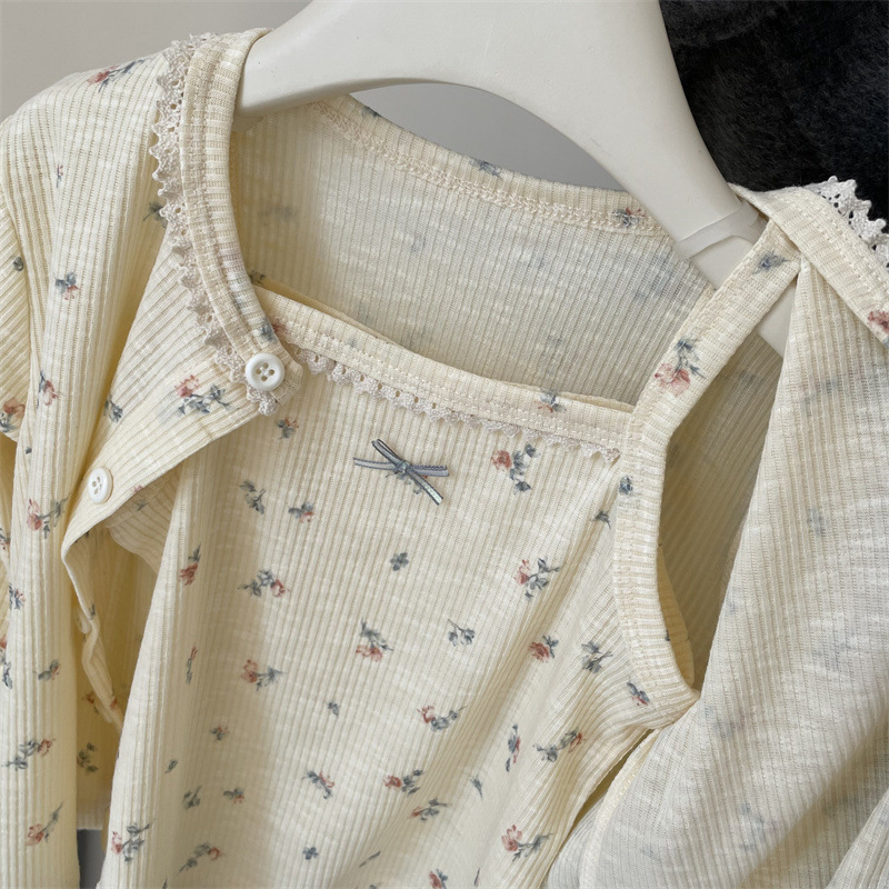 여아 꽃무늬 가디건 서스펜더 슈트, 패셔너블한 봄, 가을 의류, 여아용 달콤한 조끼 투피스 세트, 귀여운 여아스토어 가기